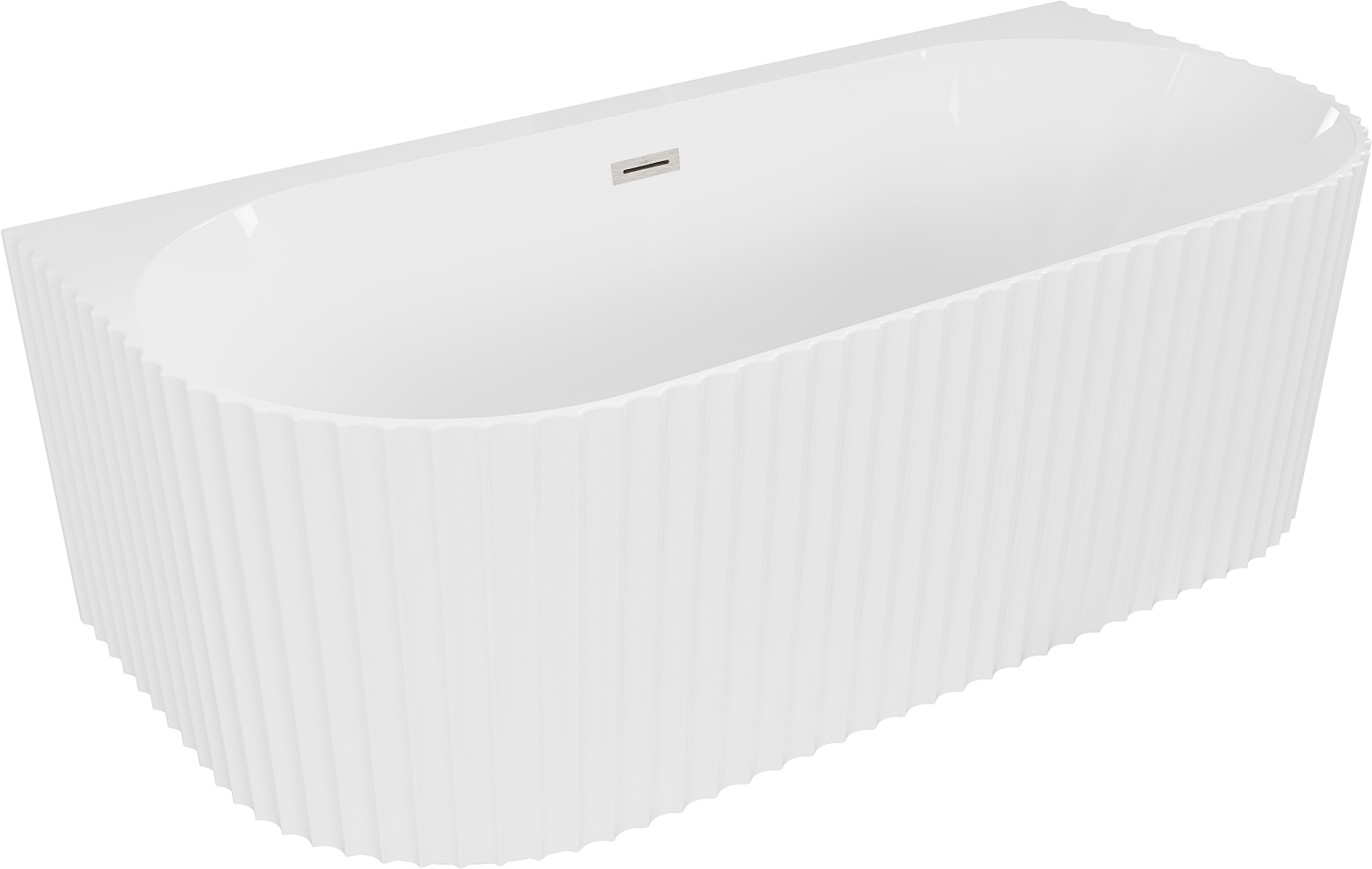 Mexen Sella wanna wolnostojąca przyścienna ryflowana 150 x 75 cm, biała połysk, przelew nikiel szczotkowany - 52711507500-97