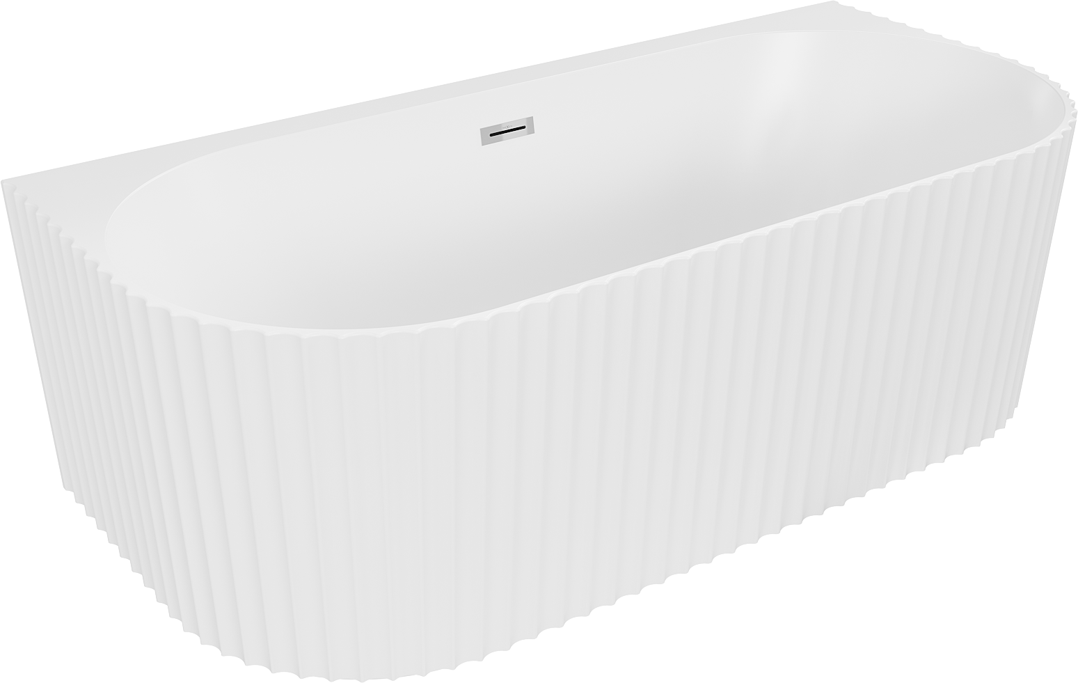 Mexen Sella wanna wolnostojąca przyścienna ryflowana 150 x 75 cm, biała mat, przelew chrom - 52711507501-01