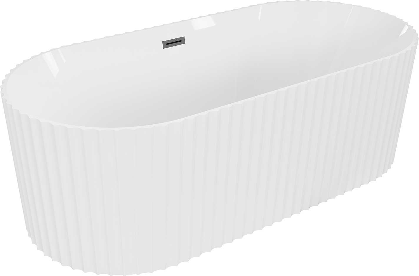 Mexen Paola wanna wolnostojąca ryflowana 150 x 75 cm, biała połysk, przelew gun metal - 52721507500-95