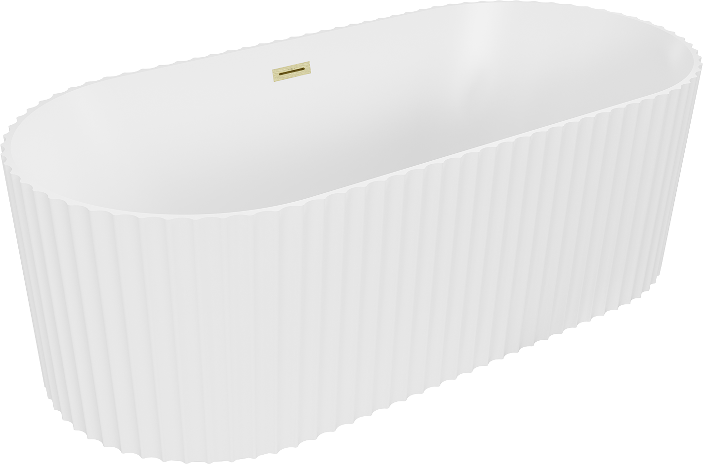 Mexen Paola wanna wolnostojąca ryflowana 150 x 75 cm, biała mat, przelew złoty szczotkowany - 52721507501-55