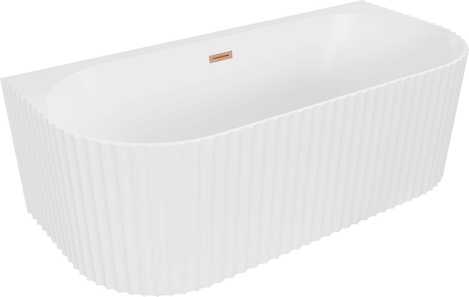 Mexen Sella wanna wolnostojąca przyścienna ryflowana 150 x 75 cm, biała mat, przelew miedź szczotkowana - 52711507501-65