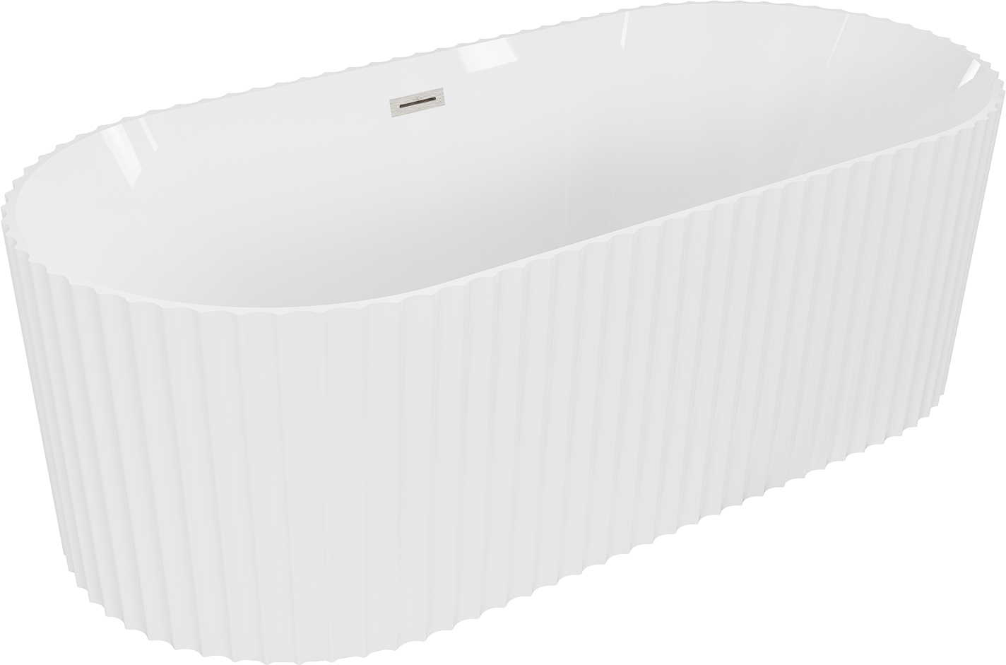 Mexen Paola wanna wolnostojąca ryflowana 170 x 80 cm, biała połysk, przelew nikiel szczotkowany - 52721708000-97