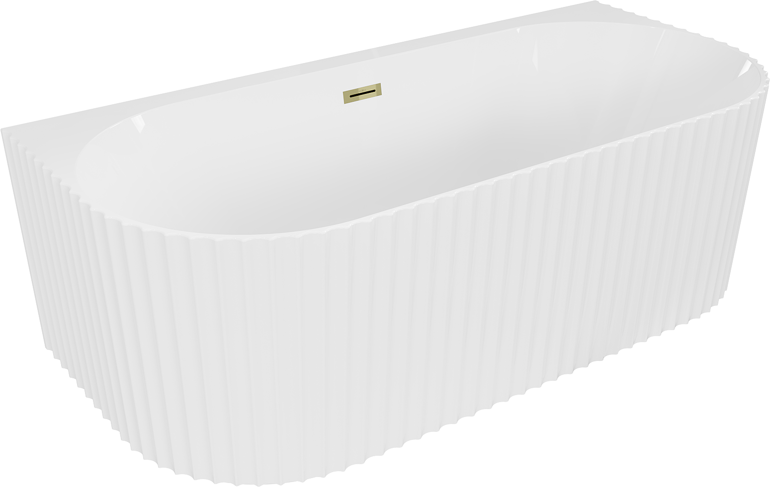 Mexen Sella wanna wolnostojąca przyścienna ryflowana 170 x 80 cm, biała połysk, przelew złoty - 52711708000-50