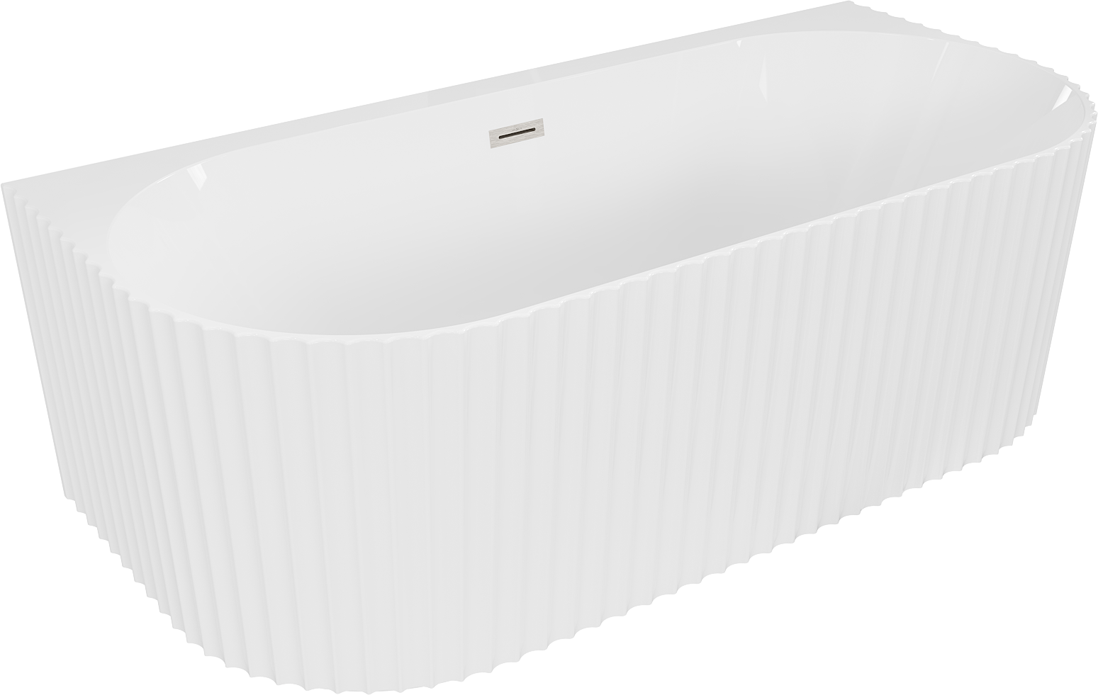 Mexen Sella wanna wolnostojąca przyścienna ryflowana 170 x 80 cm, biała połysk, przelew nikiel szczotkowany - 52711708000-97