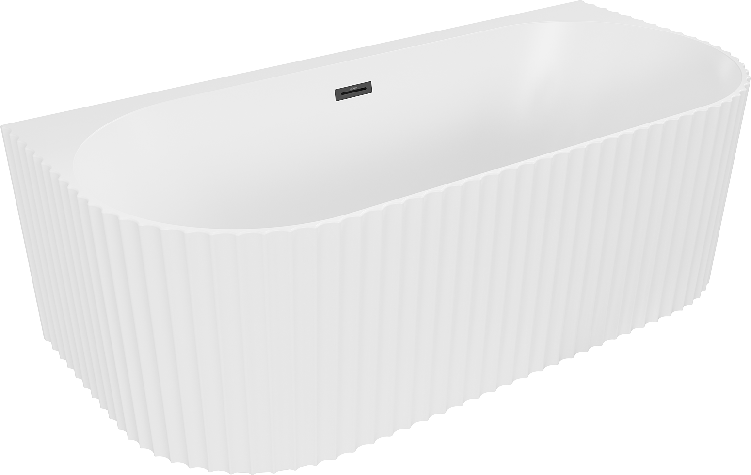 Mexen Sella wanna wolnostojąca przyścienna ryflowana 170 x 80 cm, biała mat, przelew czarny - 52711708001-70