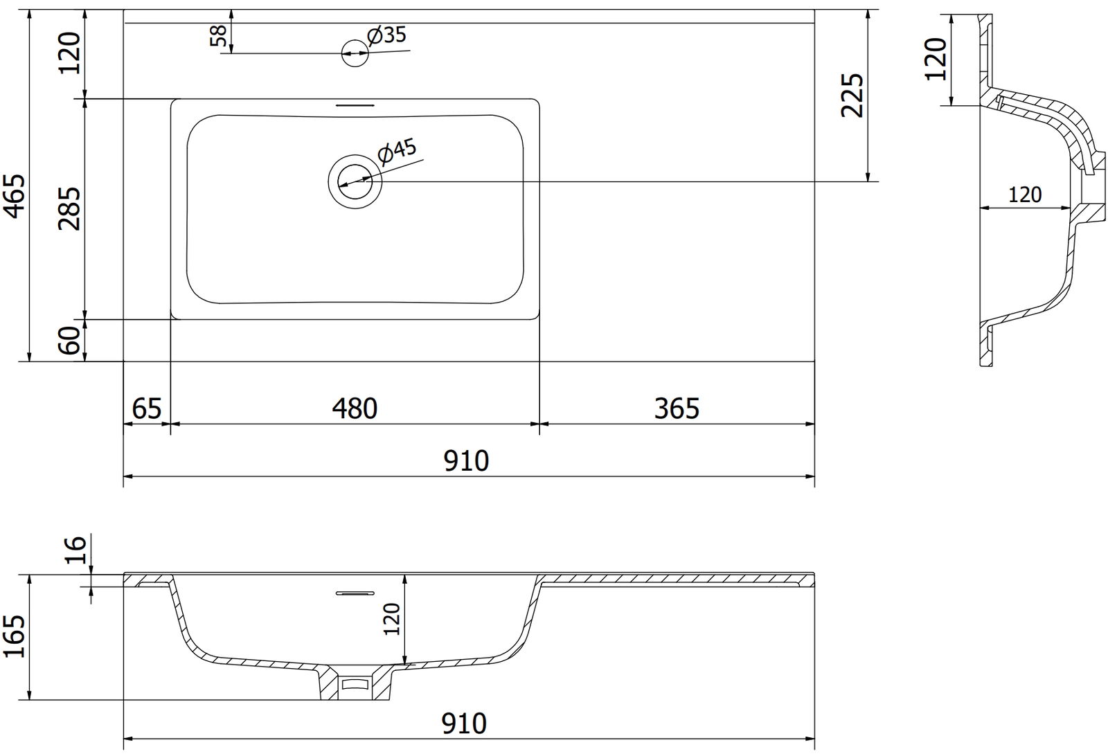 Umywalka posiada otwór, w którym możemy zamontować baterię. Pozwala to zaoszczędzić cenną przestrzeń w łazience oraz podkreślić jej estetykę. Rozwiązanie to umożliwia również łatwiejsze utrzymanie czystości wokół umywalki.