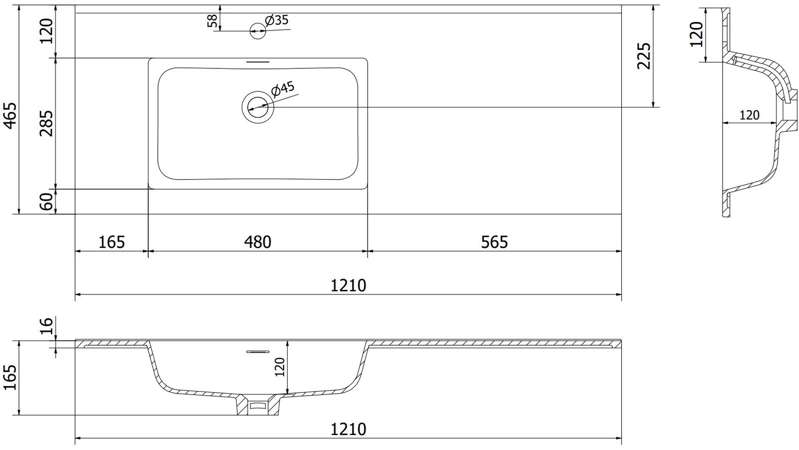 Otwór przelewowy nazywany jest "otworem bezpieczeństwa". To przez niego uchodzi nadmiar wody, dzięki czemu woda nie wydostaje się poza rant produktu, gdy dolny odpływ jest zamknięty. Jest to bardzo bezpieczne i praktyczne rozwiązanie.