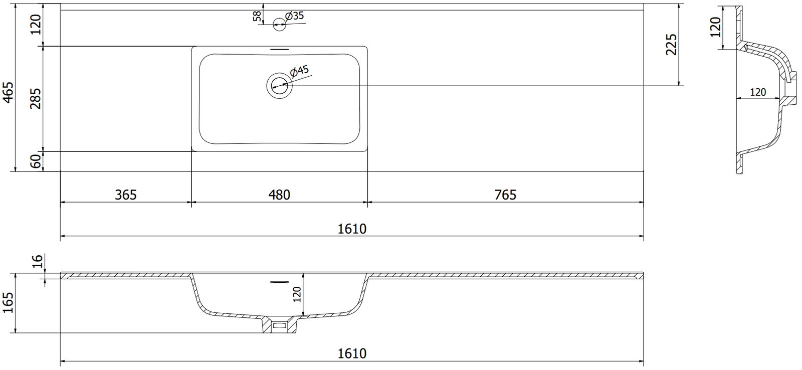 Mexen Otis umywalka wpuszczana w blat lewa 161 x 46,5 cm, biała połysk - 25181600L