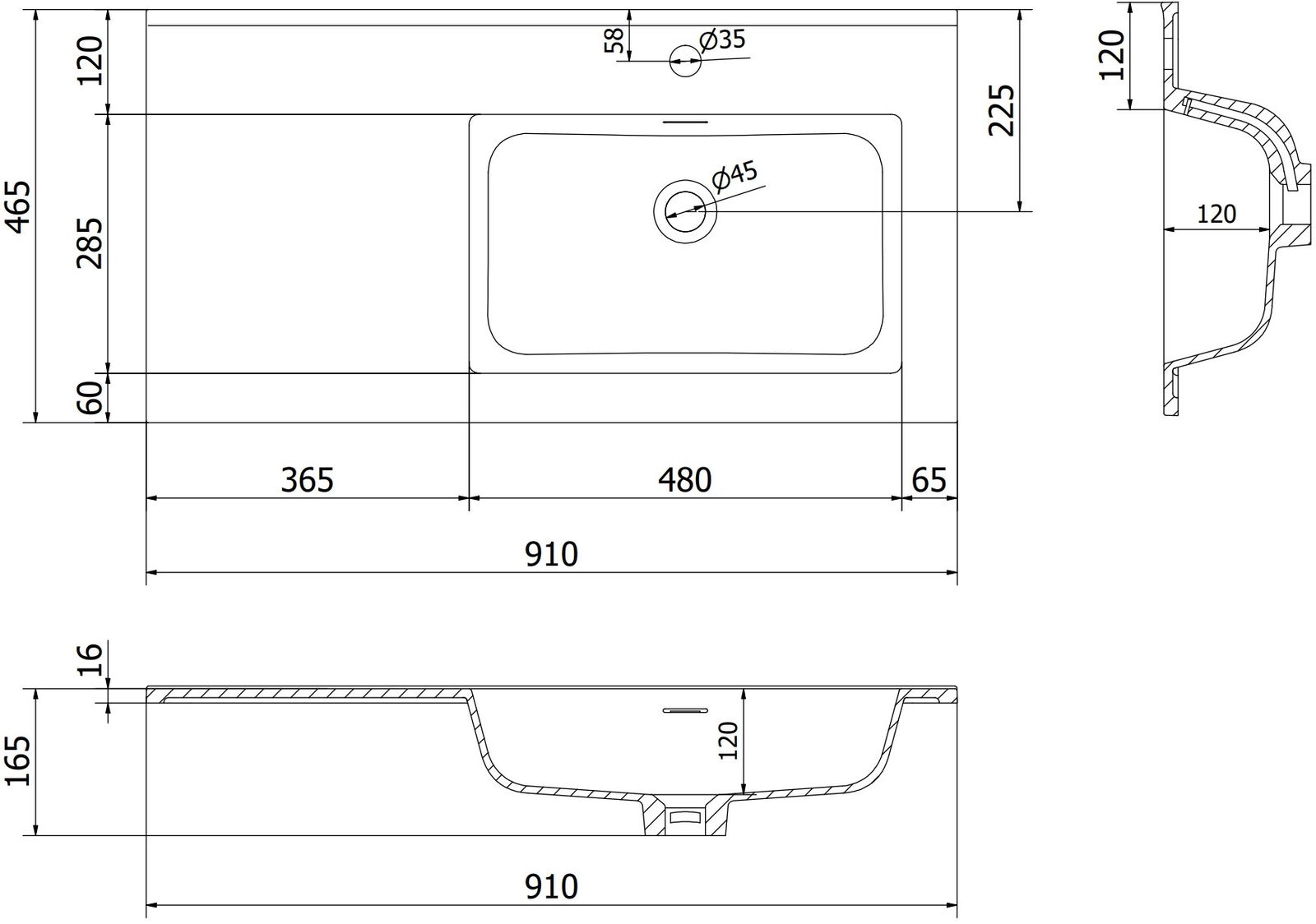 Mexen Otis umywalka wpuszczana w blat prawa 91 x 46,5 cm, czarna mat - 25189071P