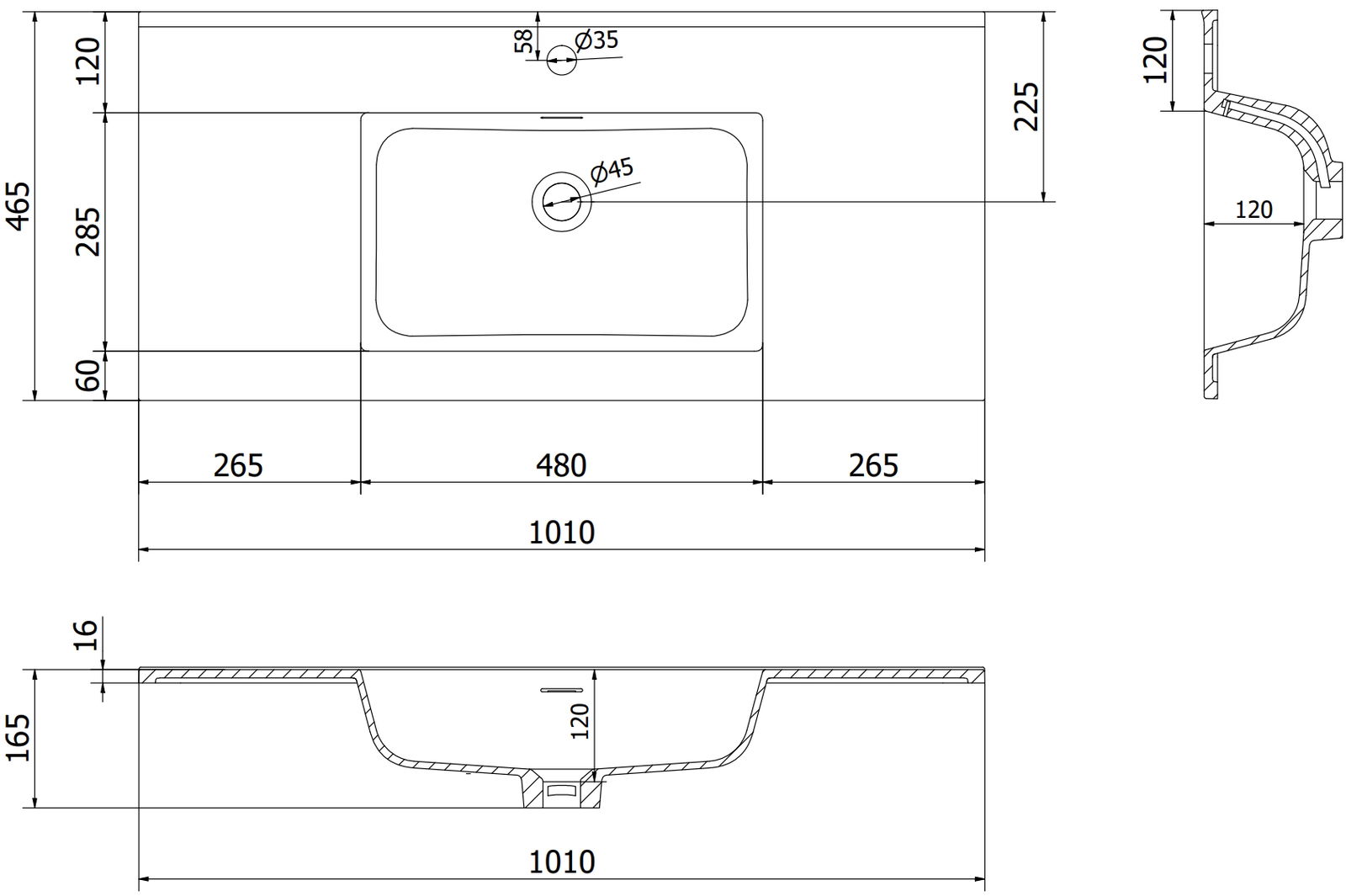 Otwór przelewowy nazywany jest "otworem bezpieczeństwa". To przez niego uchodzi nadmiar wody, dzięki czemu woda nie wydostaje się poza rant produktu, gdy dolny odpływ jest zamknięty. Jest to bardzo bezpieczne i praktyczne rozwiązanie.