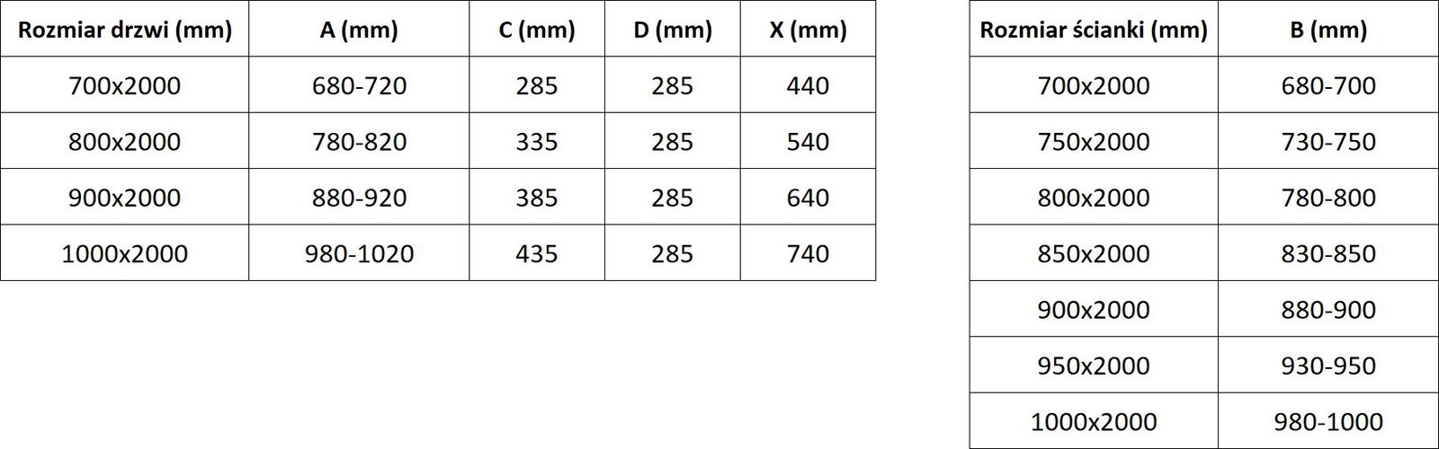 Rozmiar: 100x70 cm (drzwi 100 cm. ścianka 70 cm)