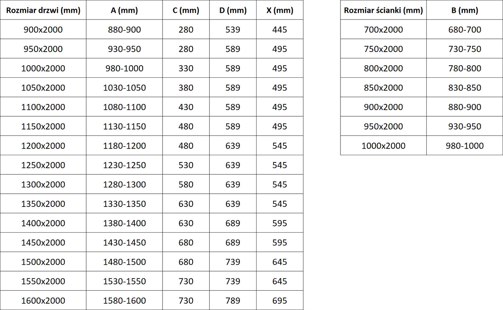 Rozmiar: 130x80 cm (drzwi 130 cm. ścianka 80 cm)