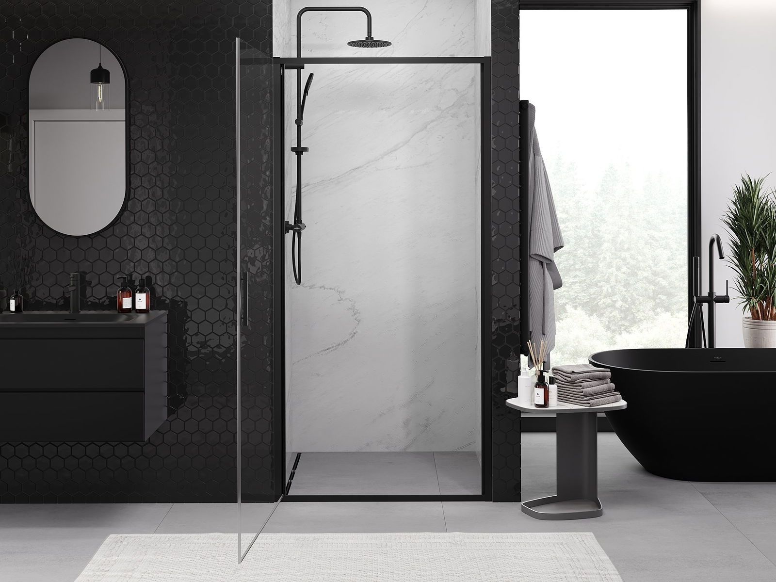 Dzięki zastosowaniu uniwersalnego systemu mocowania, drzwi prysznicowe mogą zostać zamontowane z prawej lub z lewej strony, zależnie od potrzeb. Dzięki temu możesz z łatwością zaprojektować prysznic dopasowany do przestrzeni łazienki.