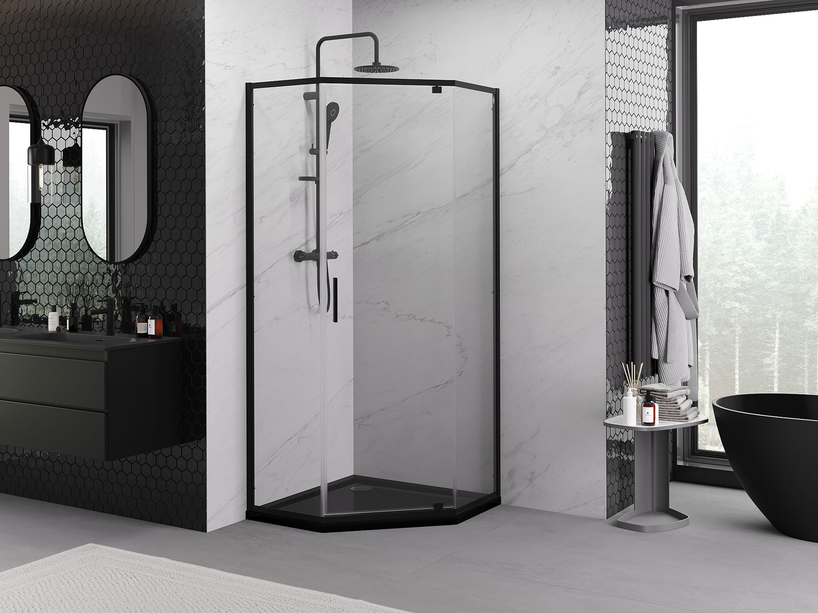 Mexen Exo kabina prysznicowa pięciokątna uchylna 100 x 100 cm, transparent, czarna - 812-100-100-70-00