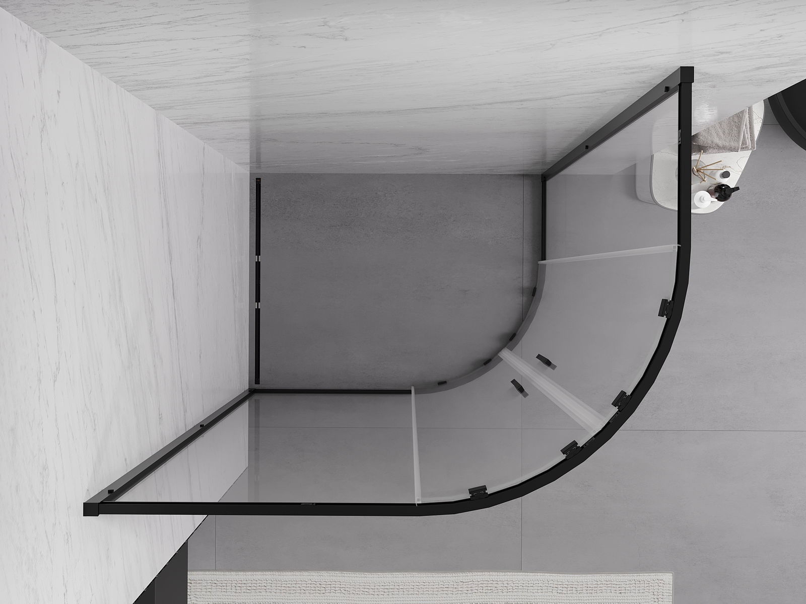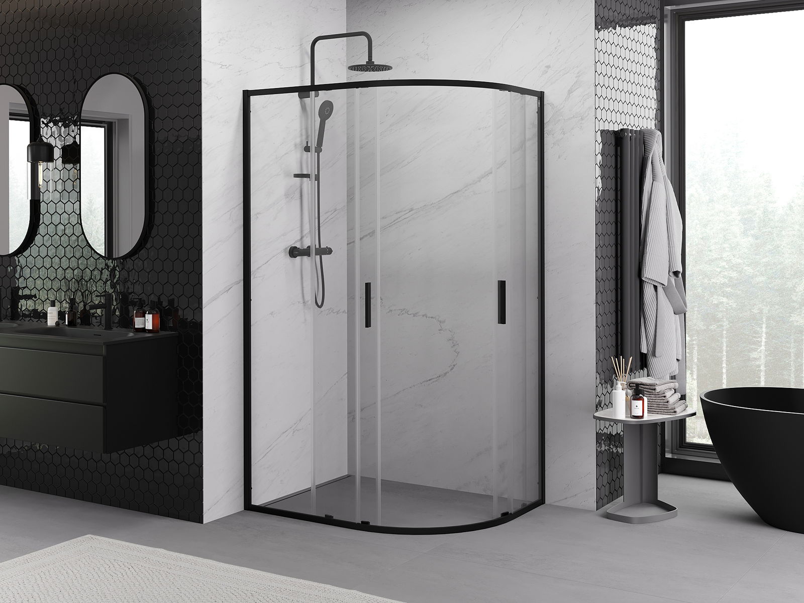 Mexen Exo kabina prysznicowa półokrągła asymetryczna rozsuwana 100 x 90 cm, transparent, czarna - 8132-100-090-70-00
