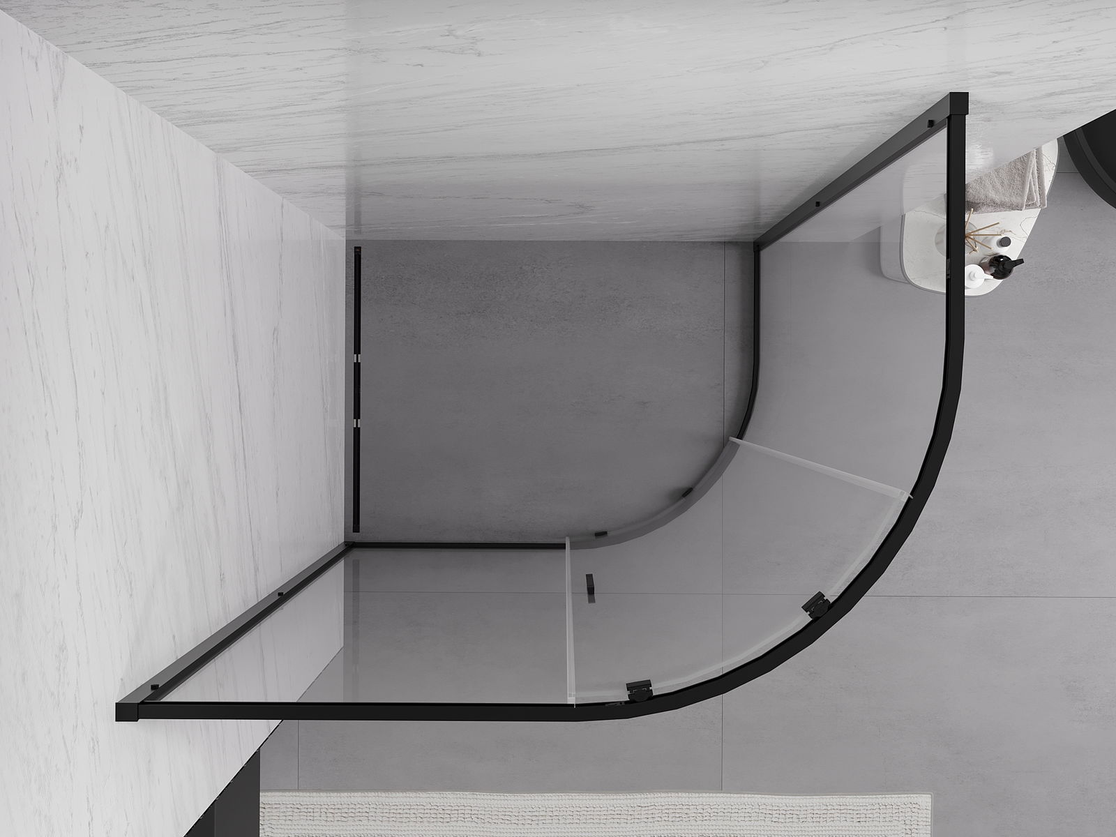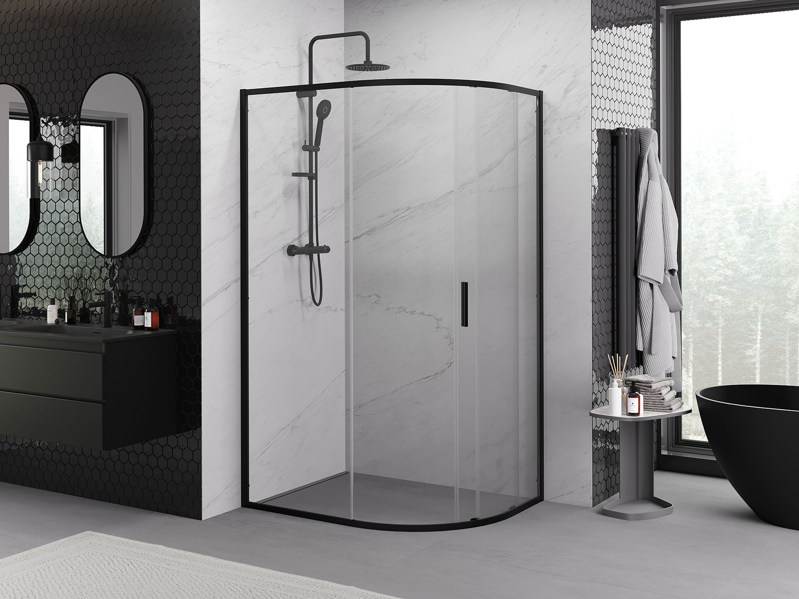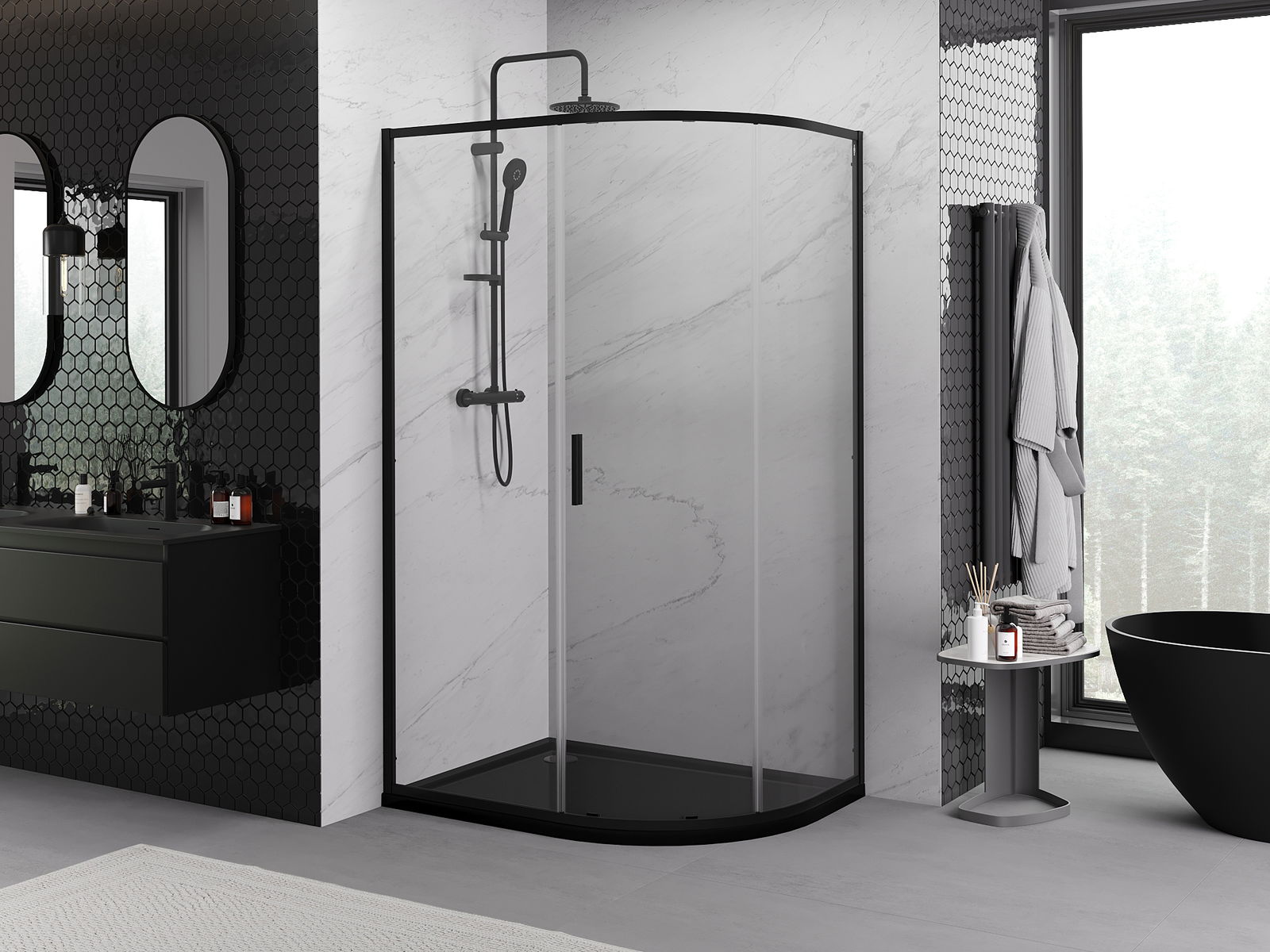 Mexen Exo kabina prysznicowa półokrągła asymetryczna rozsuwana 90 x 80 cm, transparent, czarna - 8131-090-080-70-00