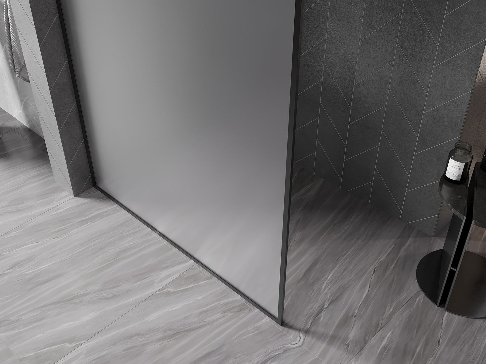 Mexen Kioto-F ścianka prysznicowa Walk-in z ramką 110 x 202 cm, szron 8 mm, czarna - 800-110-104-70-30