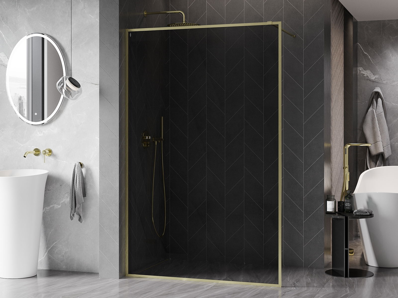 Mexen Kioto-F ścianka prysznicowa Walk-in z ramką 120 x 202 cm, grafit 8 mm, złota szczotkowana - 800-120-104-55-40