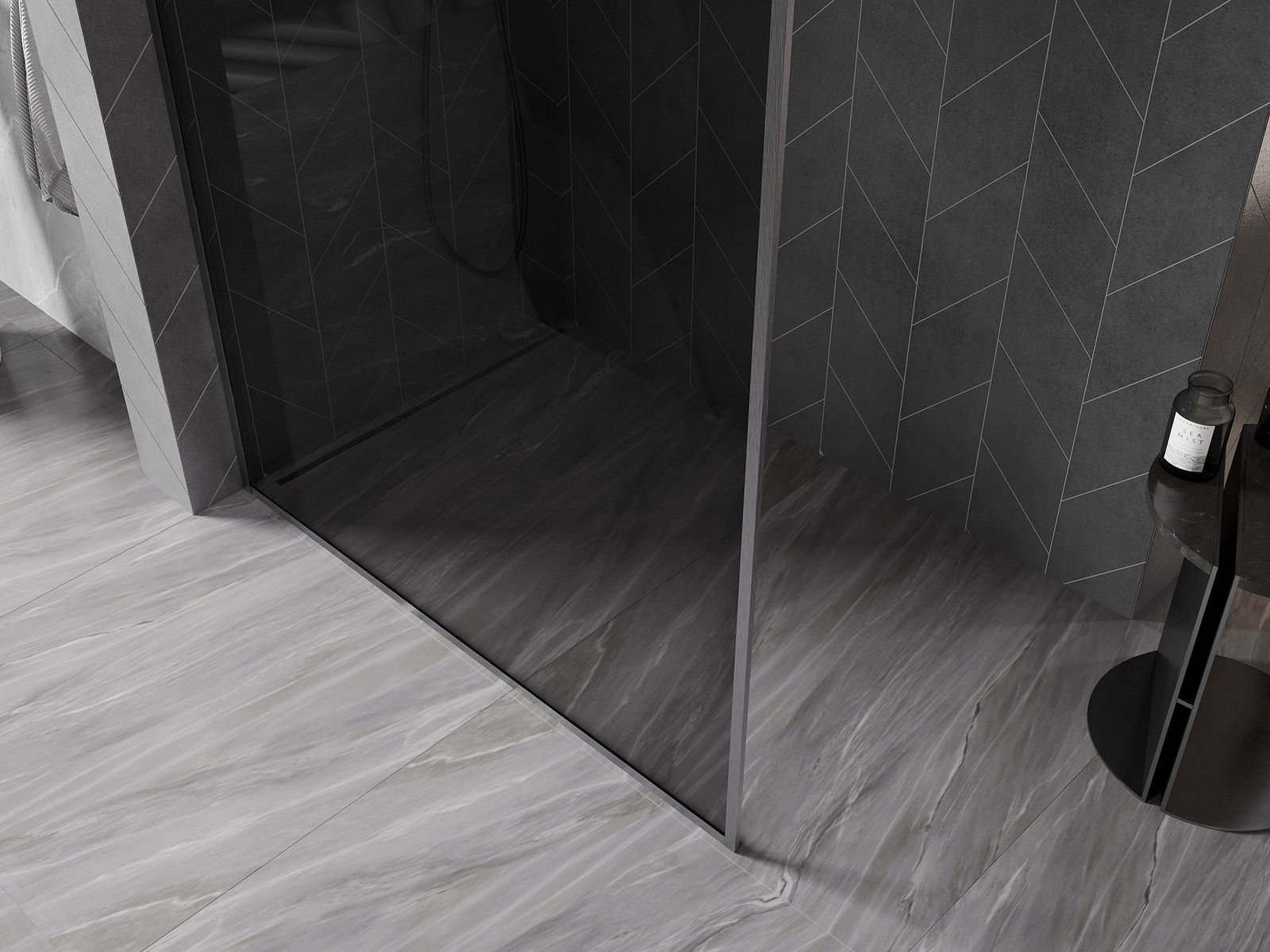 Mexen Kioto-F ścianka prysznicowa Walk-in z ramką 70 x 202 cm, grafit 8 mm, gun gray szczotkowany - 800-070-104-66-40