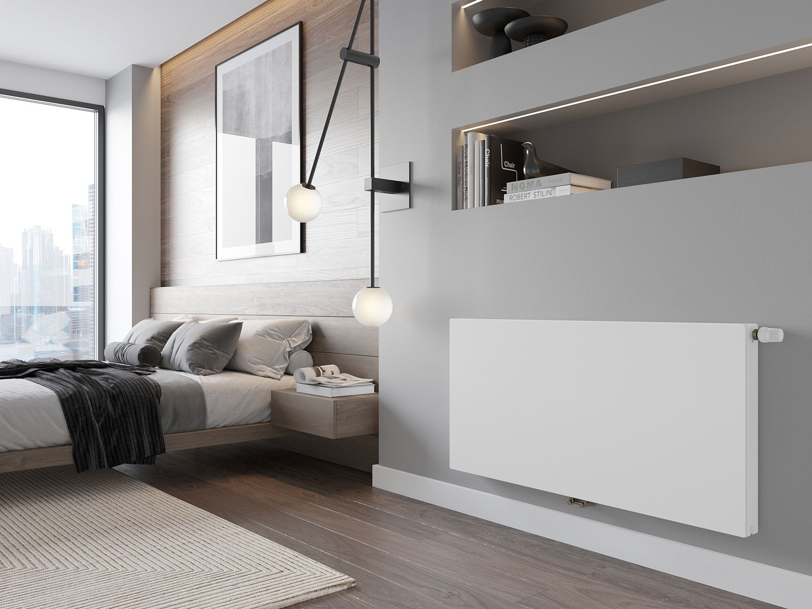 Dzięki wykorzystaniu nowoczesnych technologii grzejnik szybko się nagrzewa, a panelowa konstrukcja zapewnia efektywne i równomierne rozprowadzanie ciepła w całym pomieszczeniu, co zwiększa komfort użytkowania.
