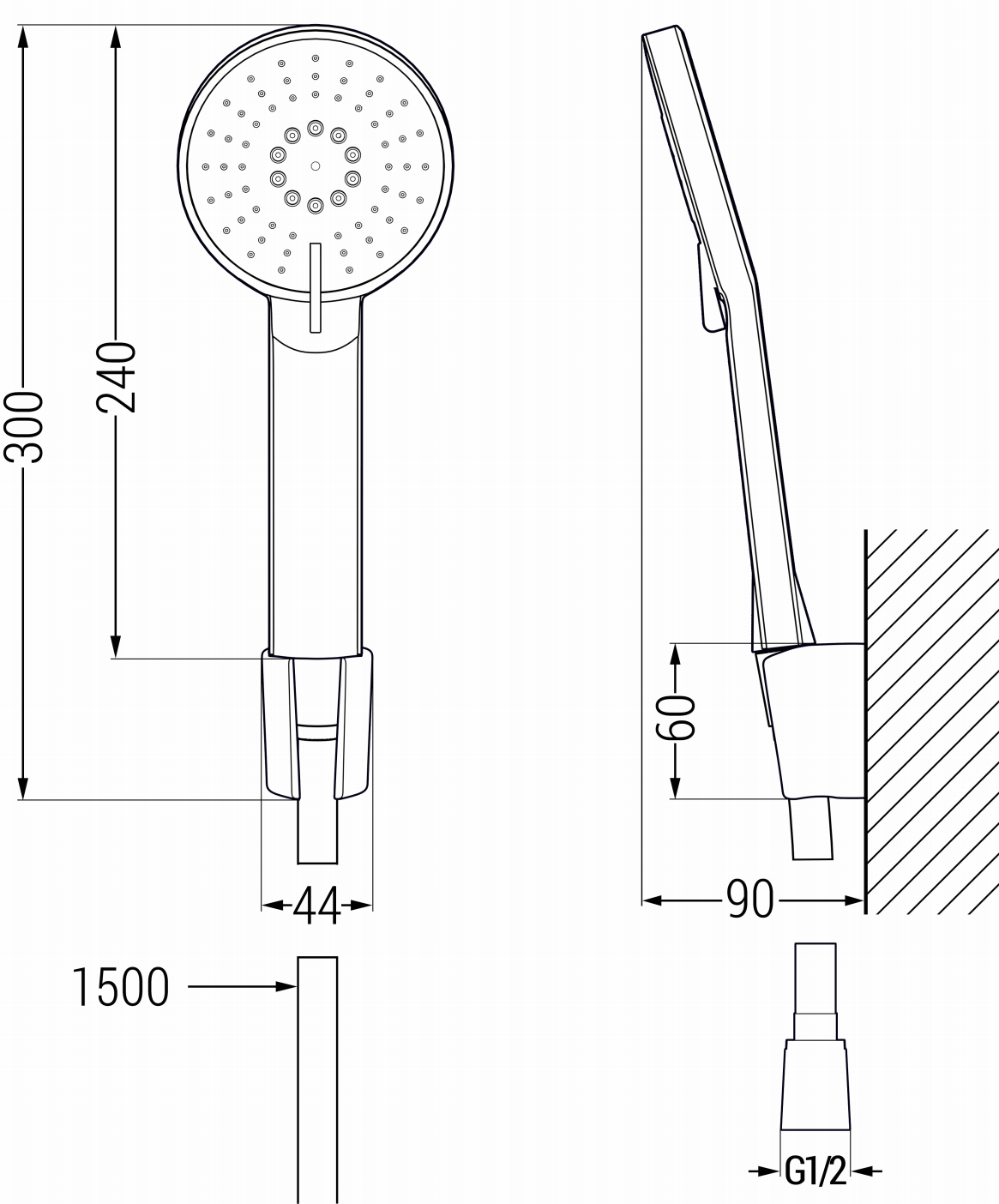 Rączka prysznicowa posiada trzy rodzaje strumienia, zmieniane za pomocą przełącznika. Daje pełną swobodę i możliwość dopasowania do potrzeb użytkownika, oferując delikatny lub silniejszy i bardziej skoncentrowany strumień wody.