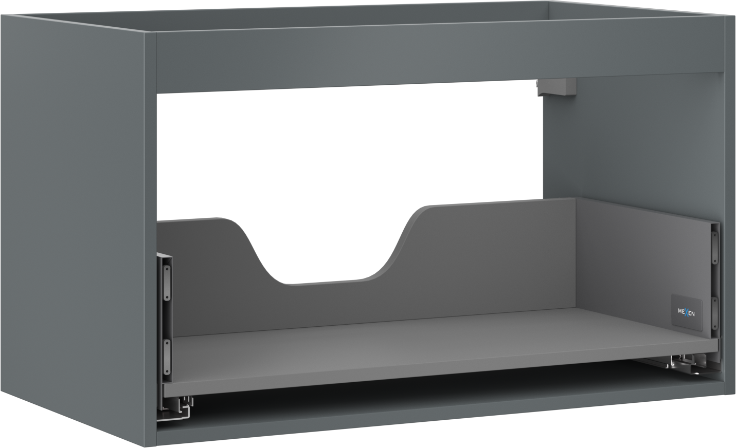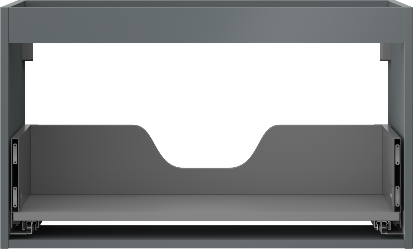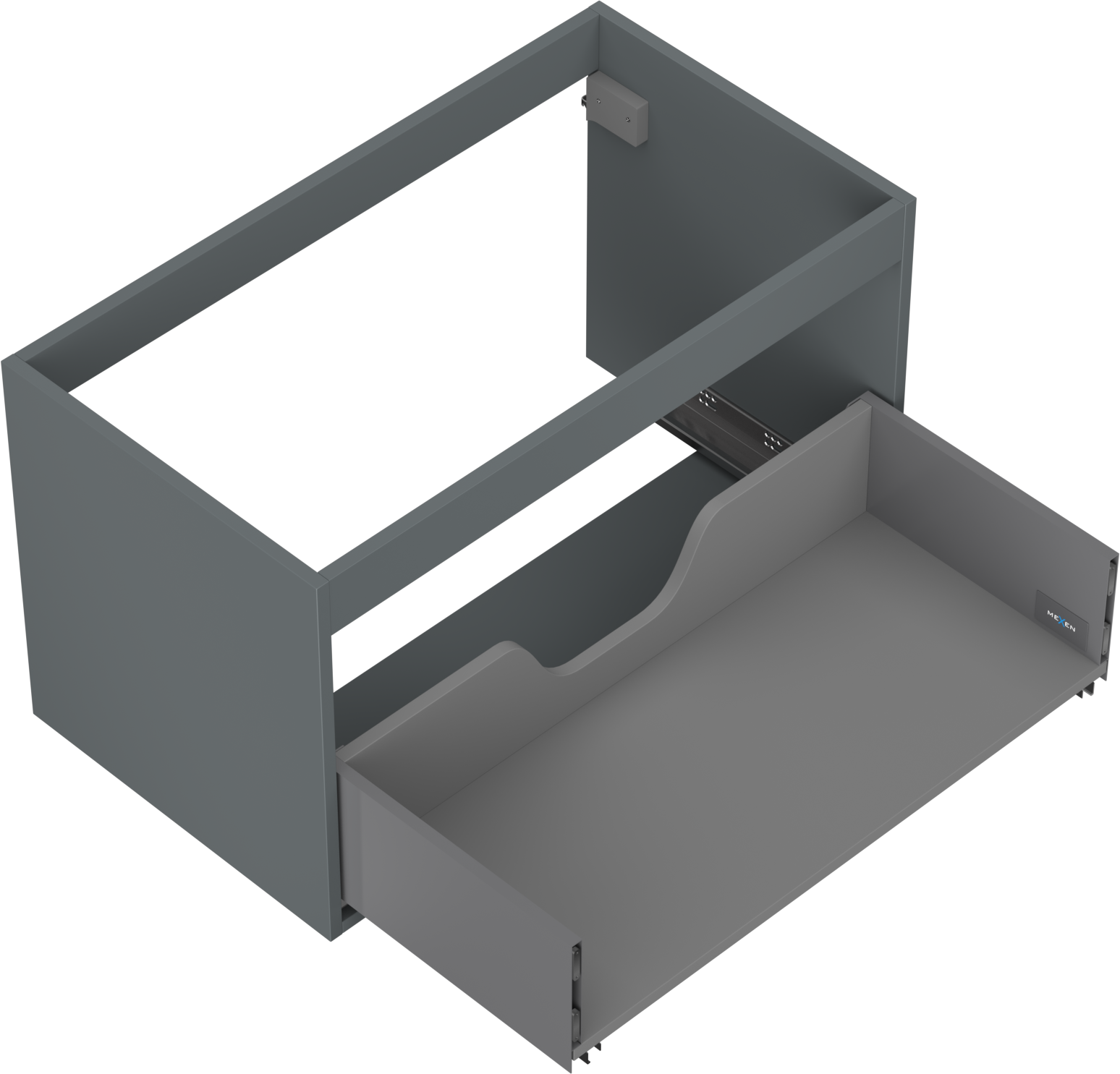 Wycięcie w szufladzie jest zaprojektowane w taki sposób, aby pomieścić syfon, który jest niezbędny w instalacjach umywalkowych. Dzięki temu mebel może być zamontowany w pełni funkcjonalnie, bez konieczności rezygnowania z przestrzeni w szufladzie na rzecz instalacji.