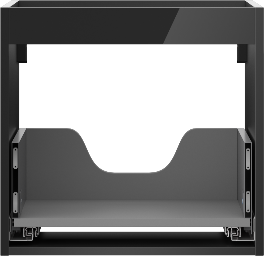 Wycięcie w szufladzie jest zaprojektowane w taki sposób, aby pomieścić syfon, który jest niezbędny w instalacjach umywalkowych. Dzięki temu mebel może być zamontowany w pełni funkcjonalnie, bez konieczności rezygnowania z przestrzeni w szufladzie na rzecz instalacji.