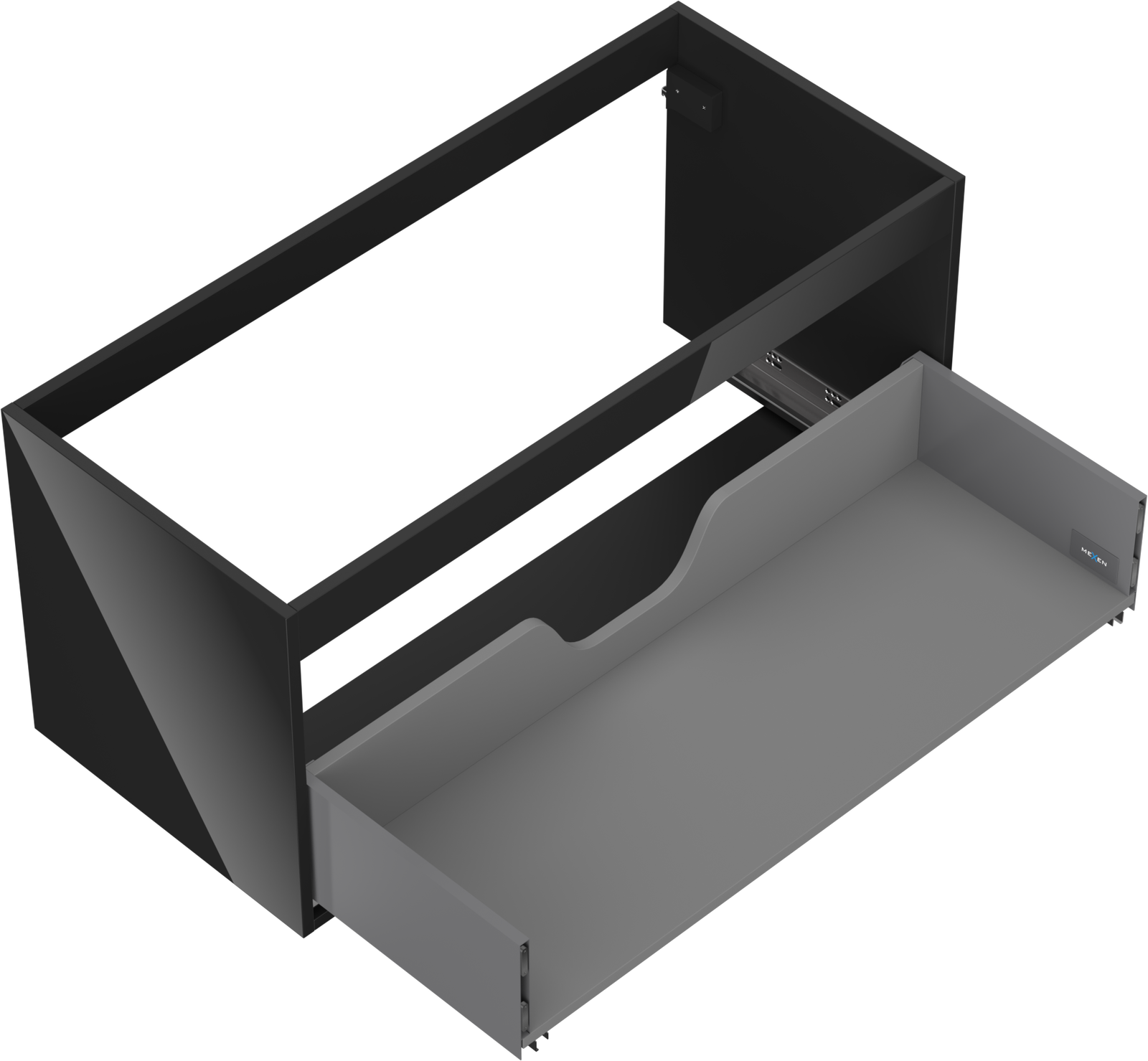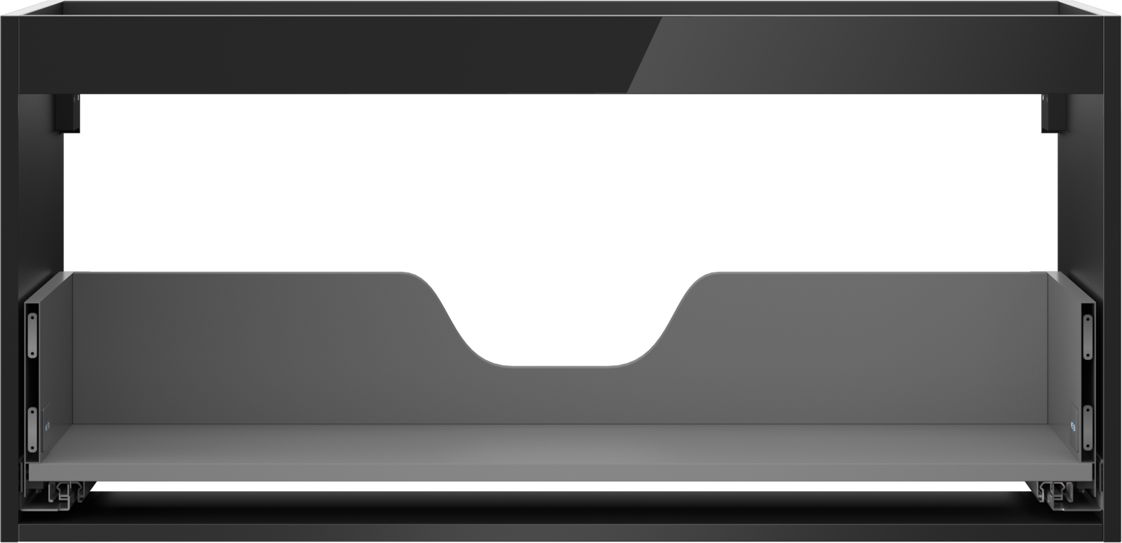 Wycięcie w szufladzie jest zaprojektowane w taki sposób, aby pomieścić syfon, który jest niezbędny w instalacjach umywalkowych. Dzięki temu mebel może być zamontowany w pełni funkcjonalnie, bez konieczności rezygnowania z przestrzeni w szufladzie na rzecz instalacji.
