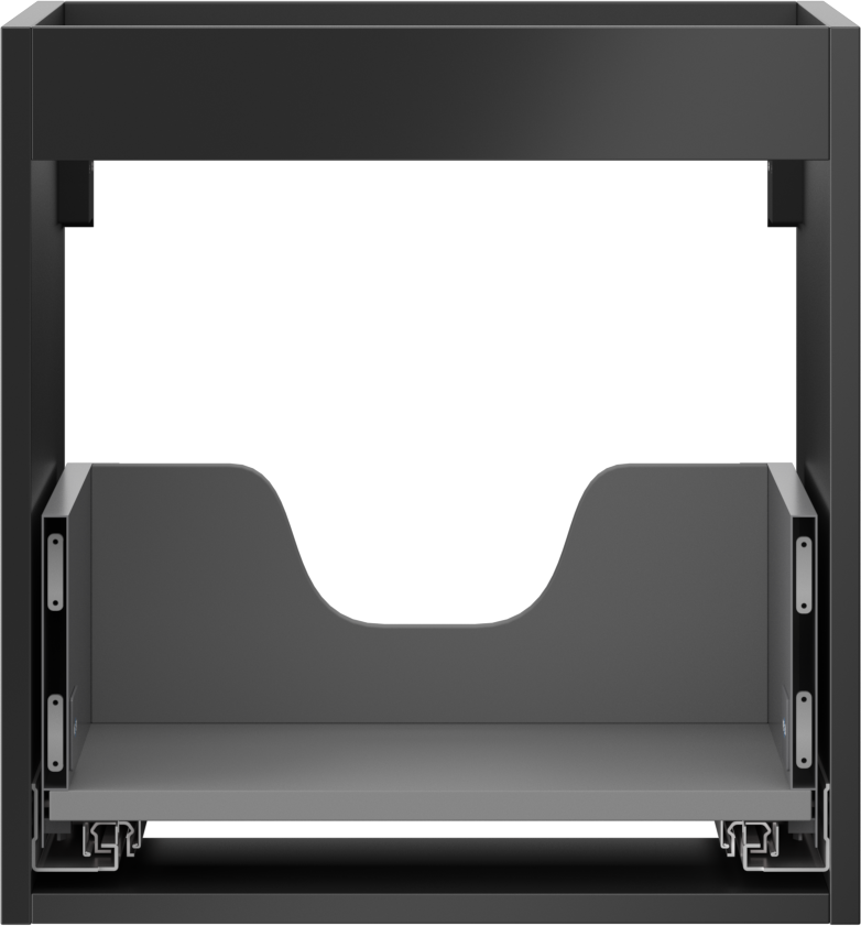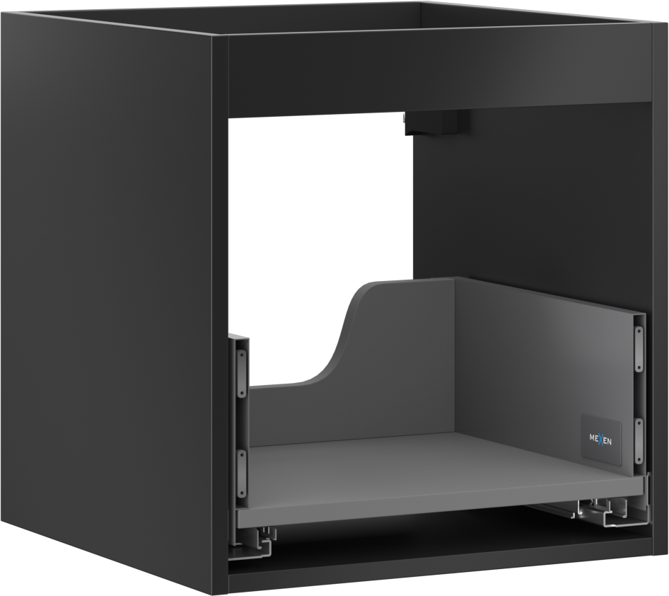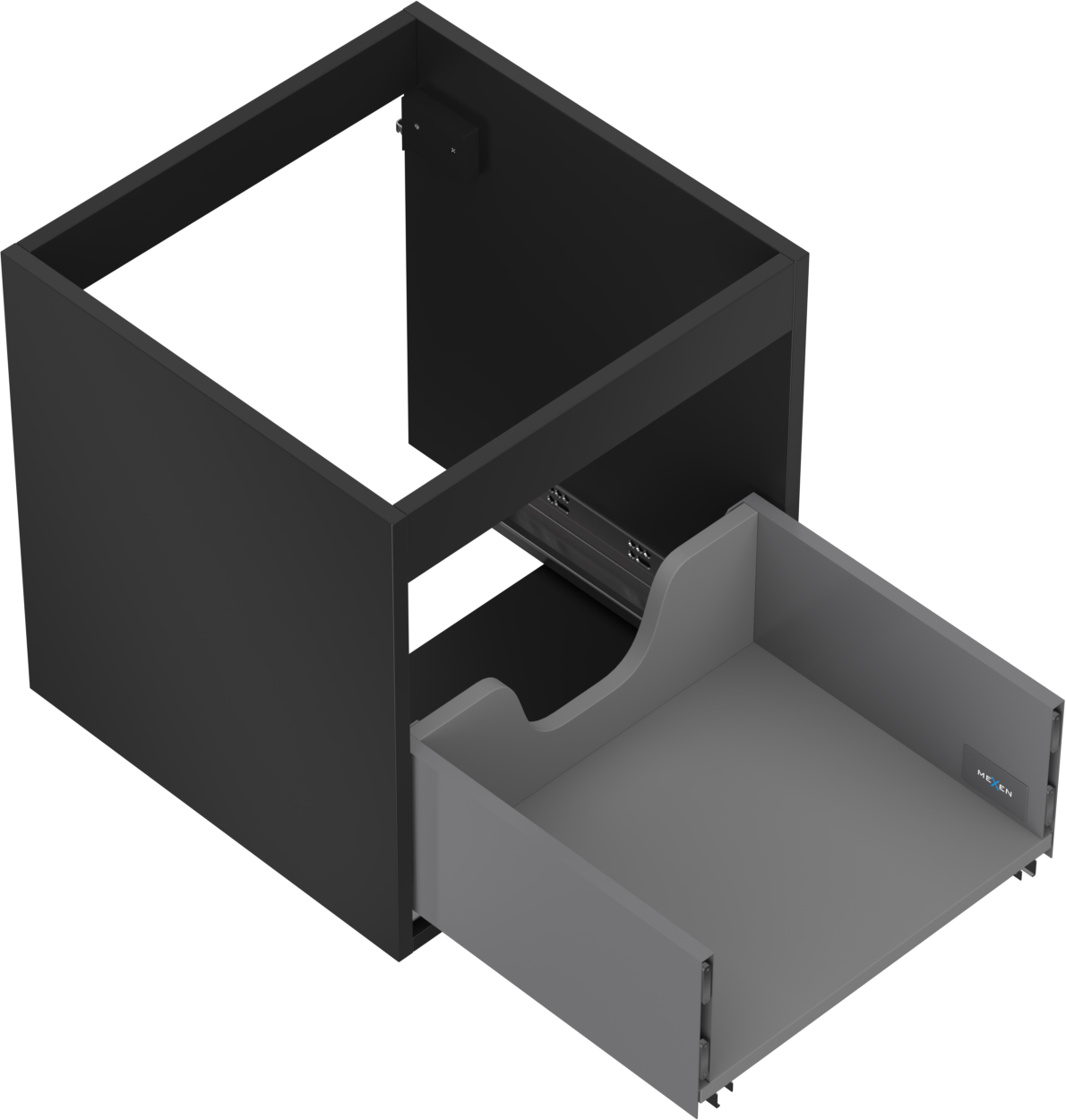 Wycięcie w szufladzie jest zaprojektowane w taki sposób, aby pomieścić syfon, który jest niezbędny w instalacjach umywalkowych. Dzięki temu mebel może być zamontowany w pełni funkcjonalnie, bez konieczności rezygnowania z przestrzeni w szufladzie na rzecz instalacji.