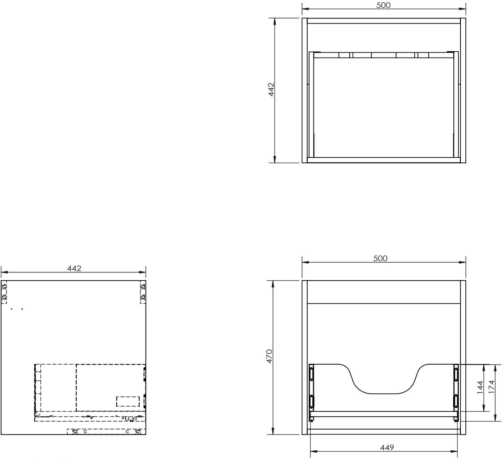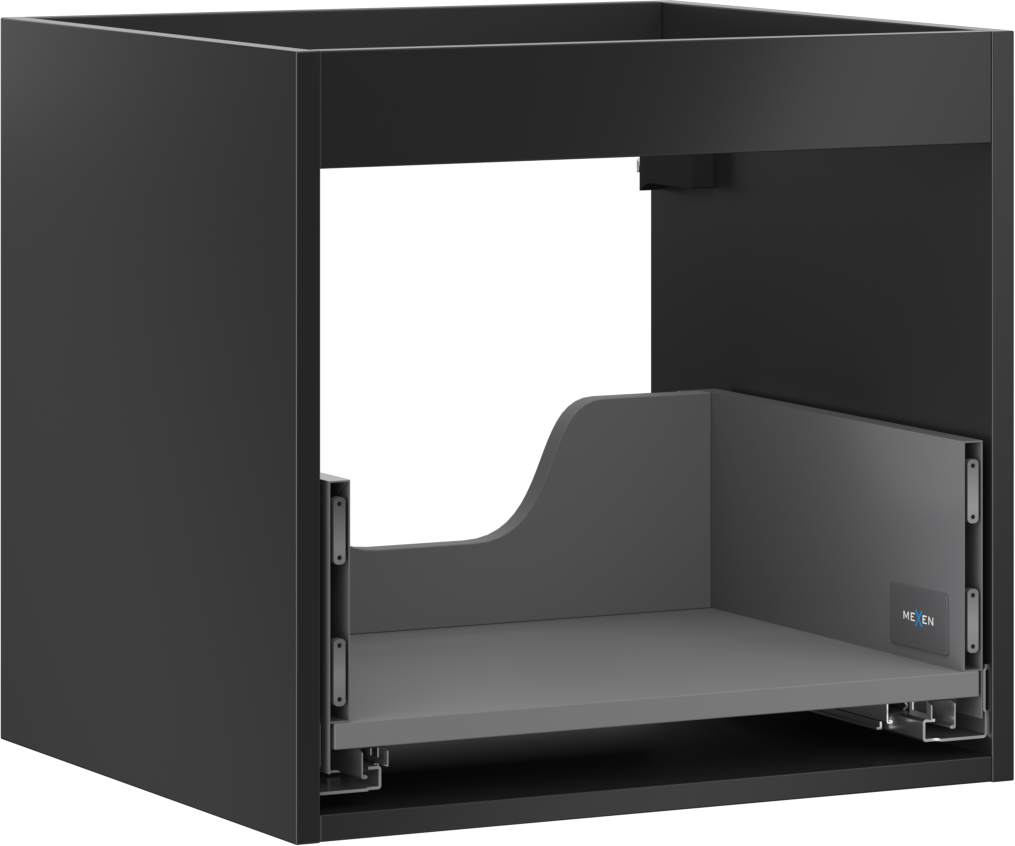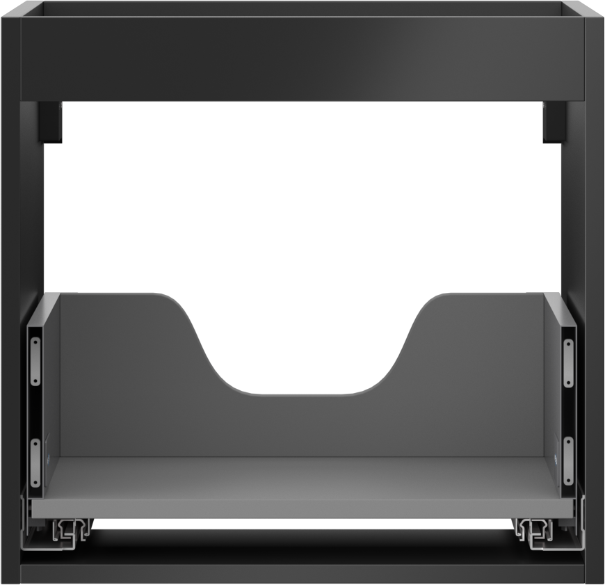 Wycięcie w szufladzie jest zaprojektowane w taki sposób, aby pomieścić syfon, który jest niezbędny w instalacjach umywalkowych. Dzięki temu mebel może być zamontowany w pełni funkcjonalnie, bez konieczności rezygnowania z przestrzeni w szufladzie na rzecz instalacji.