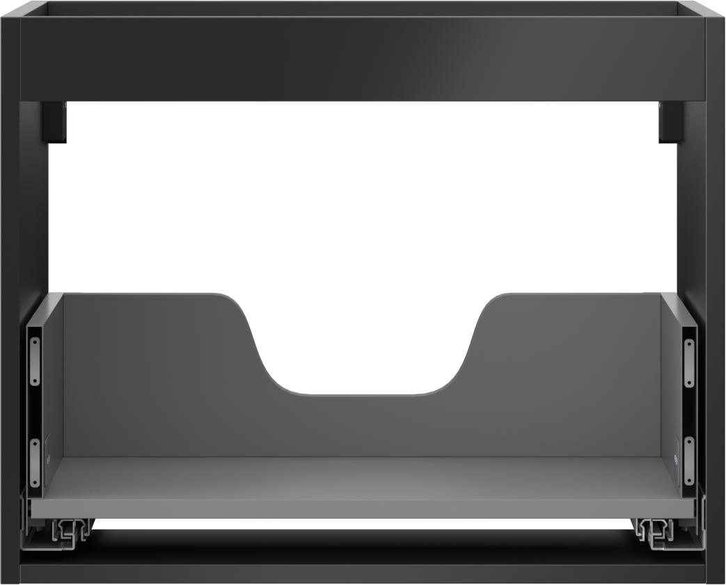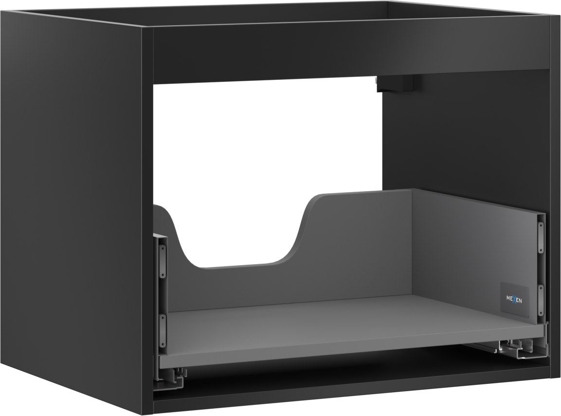 Wycięcie w szufladzie jest zaprojektowane w taki sposób, aby pomieścić syfon, który jest niezbędny w instalacjach umywalkowych. Dzięki temu mebel może być zamontowany w pełni funkcjonalnie, bez konieczności rezygnowania z przestrzeni w szufladzie na rzecz instalacji.