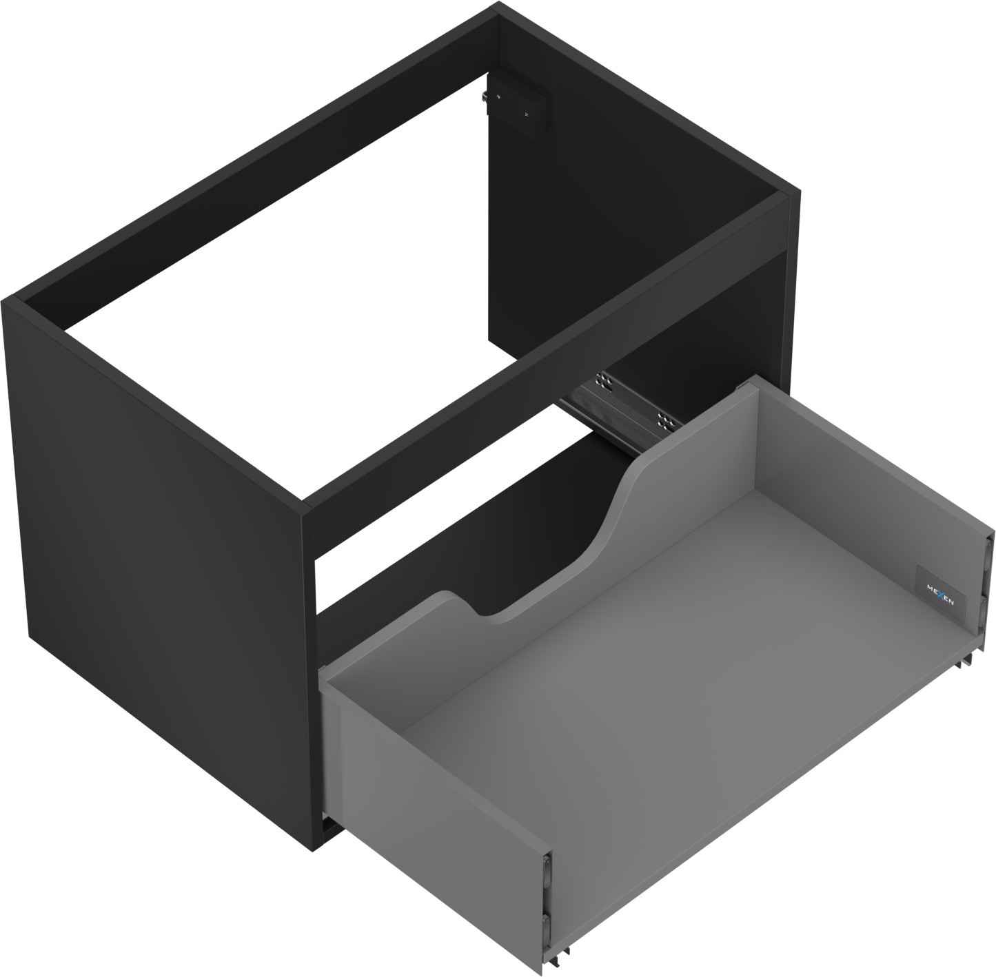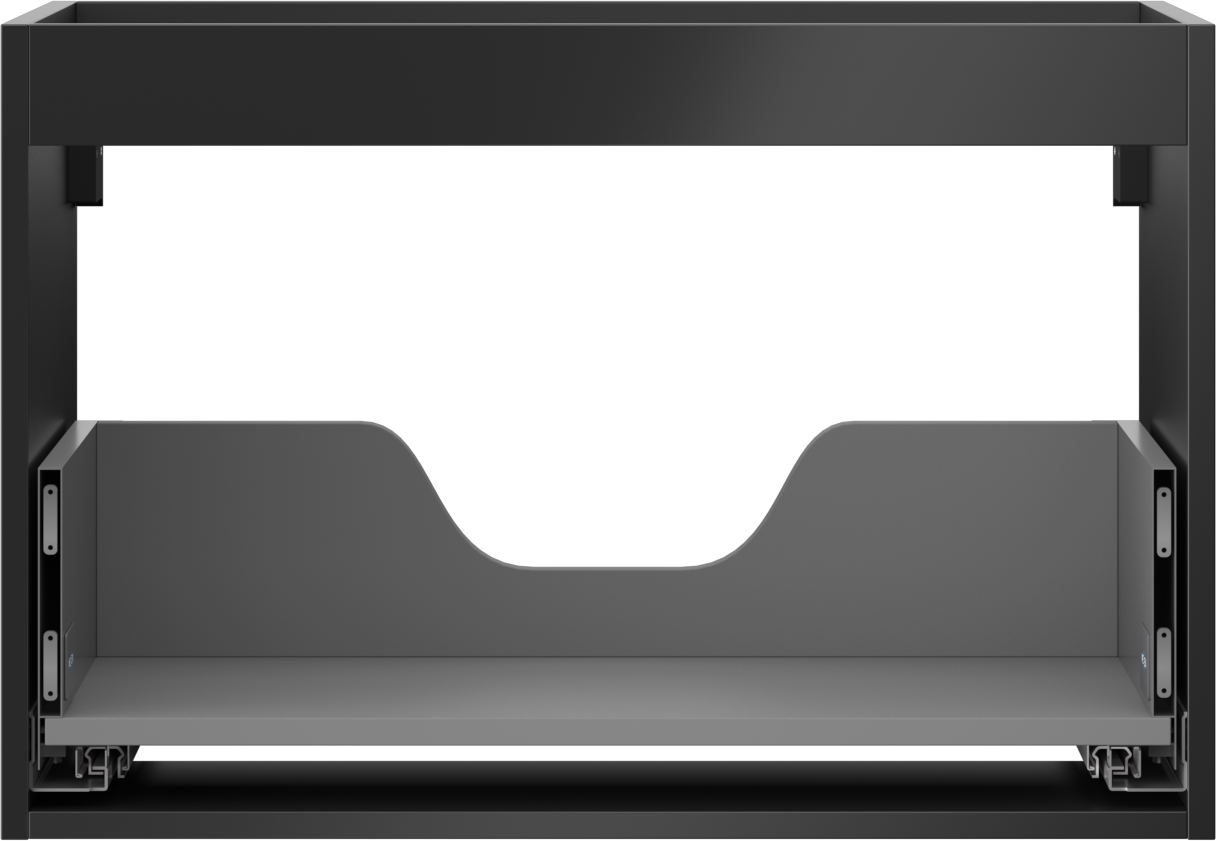 Wycięcie w szufladzie jest zaprojektowane w taki sposób, aby pomieścić syfon, który jest niezbędny w instalacjach umywalkowych. Dzięki temu mebel może być zamontowany w pełni funkcjonalnie, bez konieczności rezygnowania z przestrzeni w szufladzie na rzecz instalacji.