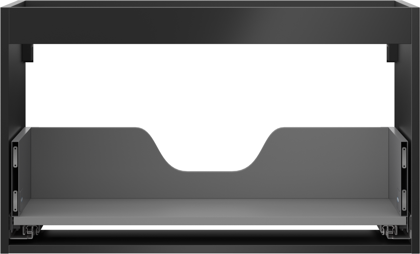 Wycięcie w szufladzie jest zaprojektowane w taki sposób, aby pomieścić syfon, który jest niezbędny w instalacjach umywalkowych. Dzięki temu mebel może być zamontowany w pełni funkcjonalnie, bez konieczności rezygnowania z przestrzeni w szufladzie na rzecz instalacji.