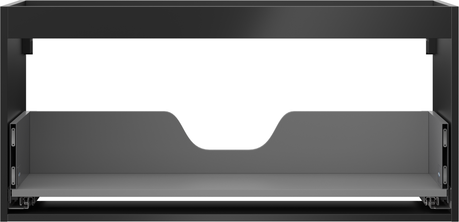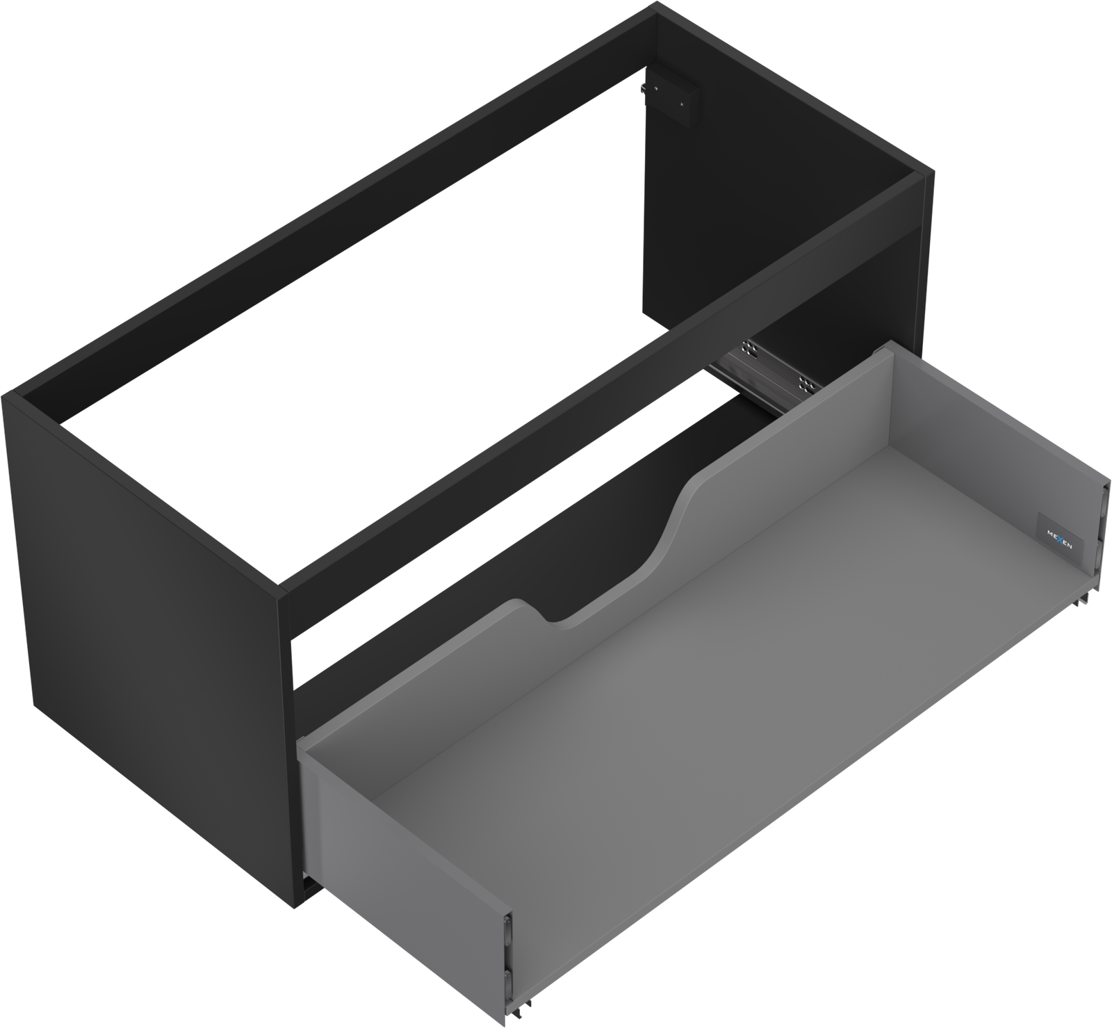 Wycięcie w szufladzie jest zaprojektowane w taki sposób, aby pomieścić syfon, który jest niezbędny w instalacjach umywalkowych. Dzięki temu mebel może być zamontowany w pełni funkcjonalnie, bez konieczności rezygnowania z przestrzeni w szufladzie na rzecz instalacji.