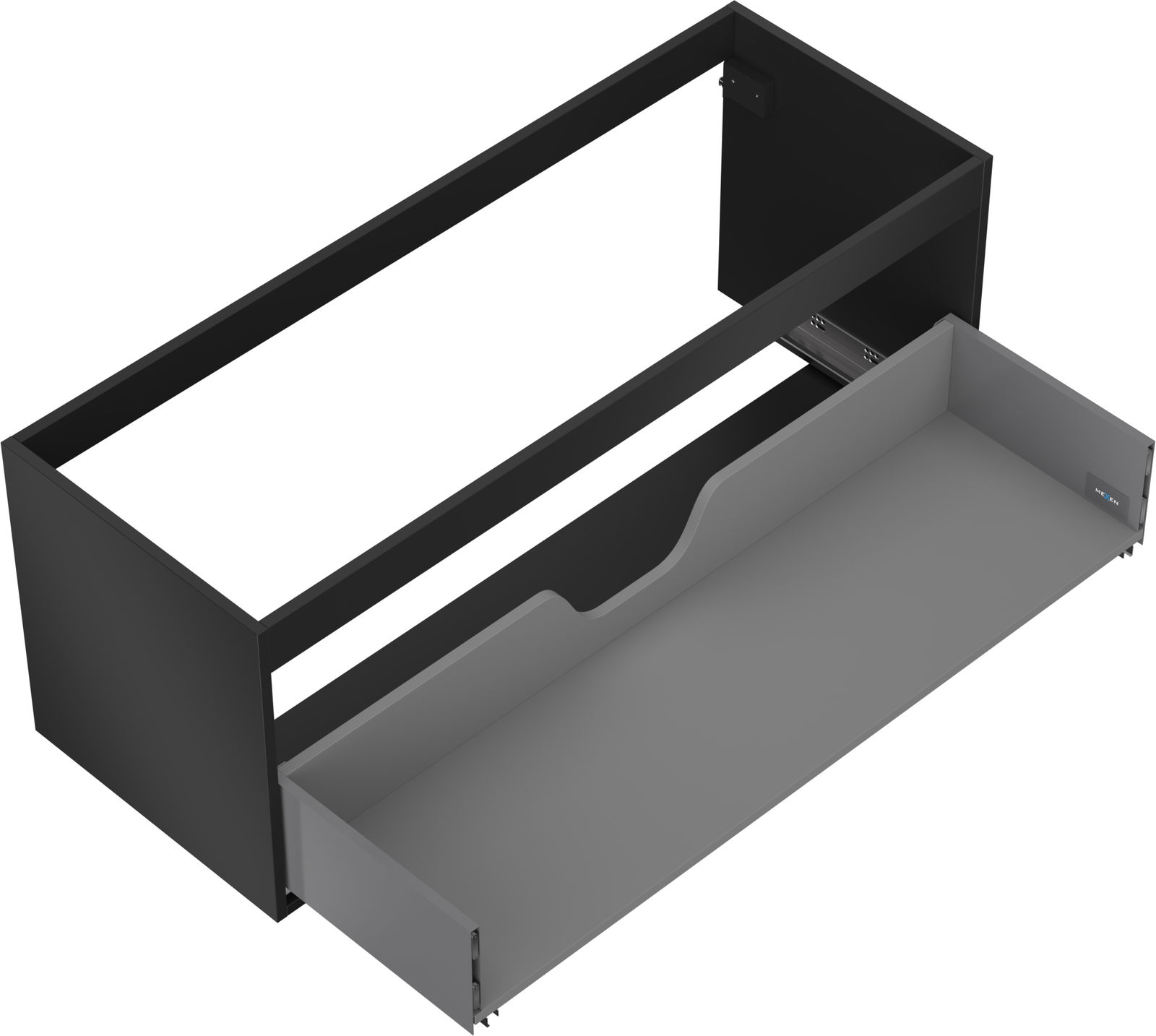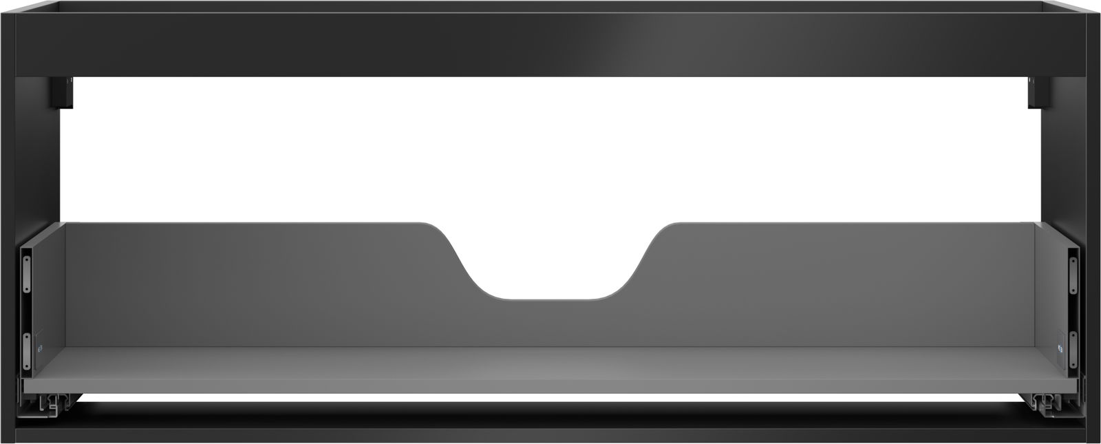 Wycięcie w szufladzie jest zaprojektowane w taki sposób, aby pomieścić syfon, który jest niezbędny w instalacjach umywalkowych. Dzięki temu mebel może być zamontowany w pełni funkcjonalnie, bez konieczności rezygnowania z przestrzeni w szufladzie na rzecz instalacji.