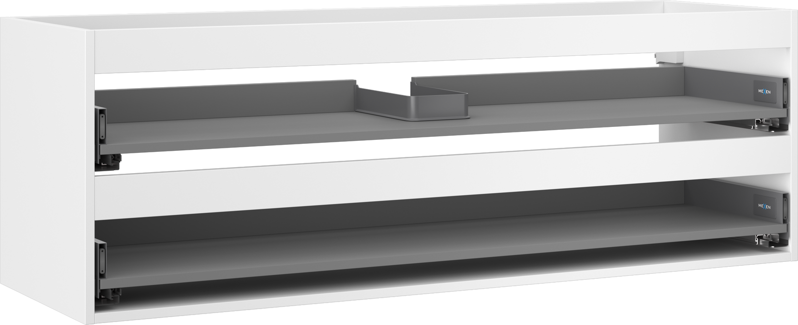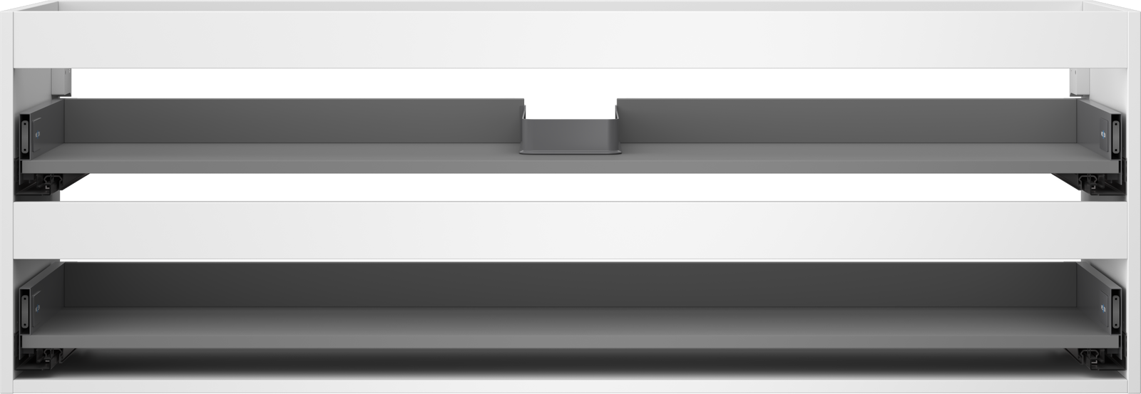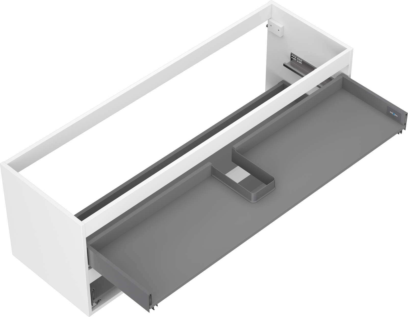 Wycięcie w szufladzie jest zaprojektowane w taki sposób, aby pomieścić syfon, który jest niezbędny w instalacjach umywalkowych. Dzięki temu mebel może być zamontowany w pełni funkcjonalnie, bez konieczności rezygnowania z przestrzeni w szufladzie na rzecz instalacji.