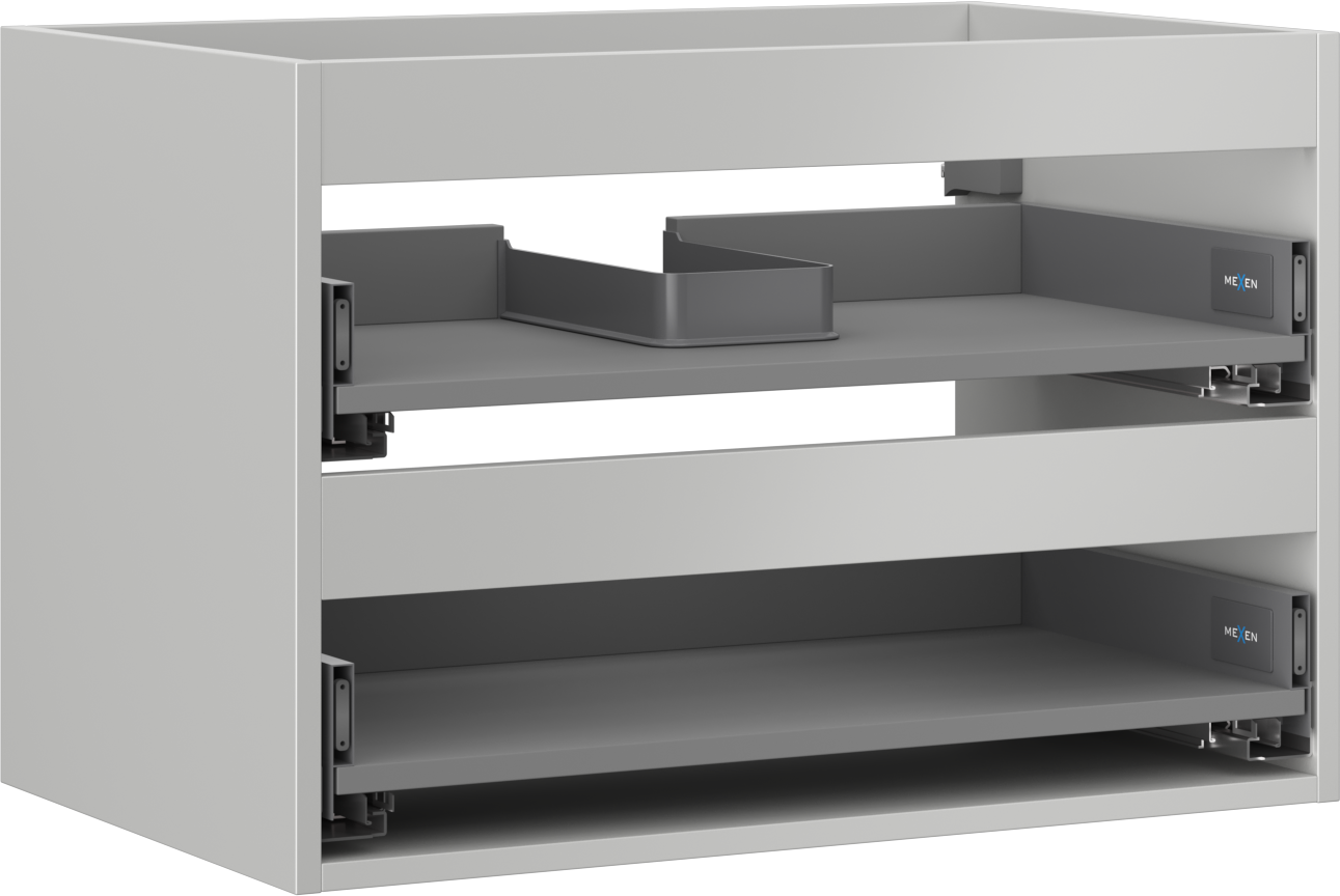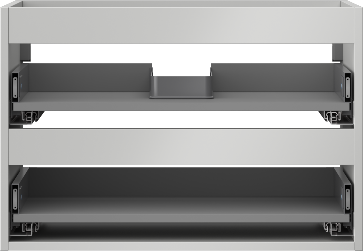 Wycięcie w szufladzie jest zaprojektowane w taki sposób, aby pomieścić syfon, który jest niezbędny w instalacjach umywalkowych. Dzięki temu mebel może być zamontowany w pełni funkcjonalnie, bez konieczności rezygnowania z przestrzeni w szufladzie na rzecz instalacji.