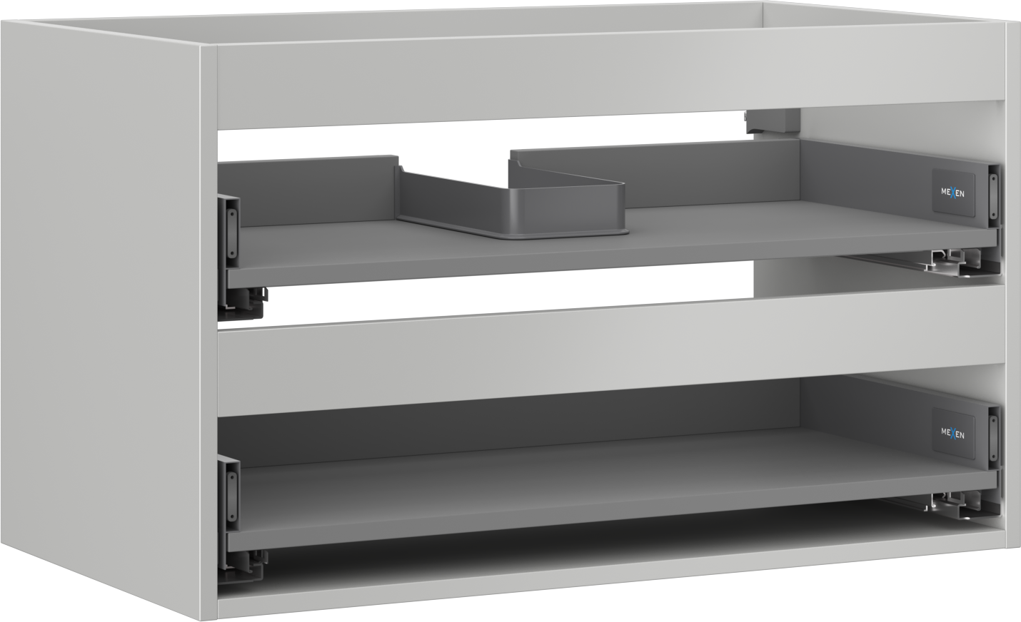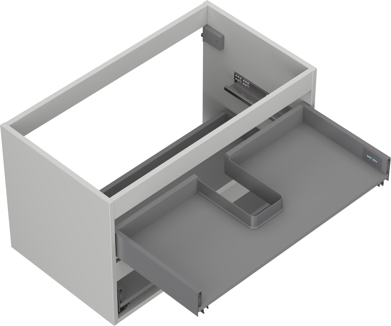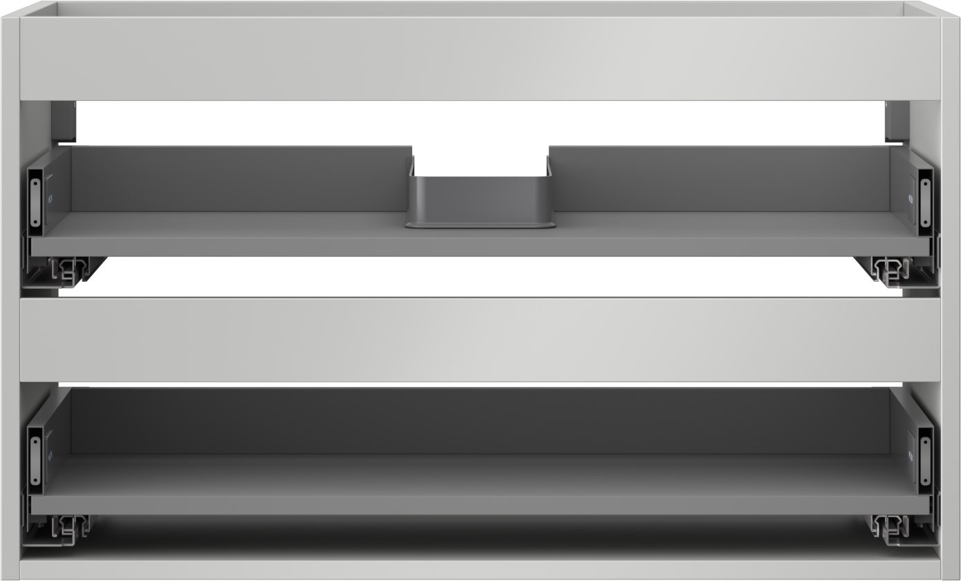 Wycięcie w szufladzie jest zaprojektowane w taki sposób, aby pomieścić syfon, który jest niezbędny w instalacjach umywalkowych. Dzięki temu mebel może być zamontowany w pełni funkcjonalnie, bez konieczności rezygnowania z przestrzeni w szufladzie na rzecz instalacji.