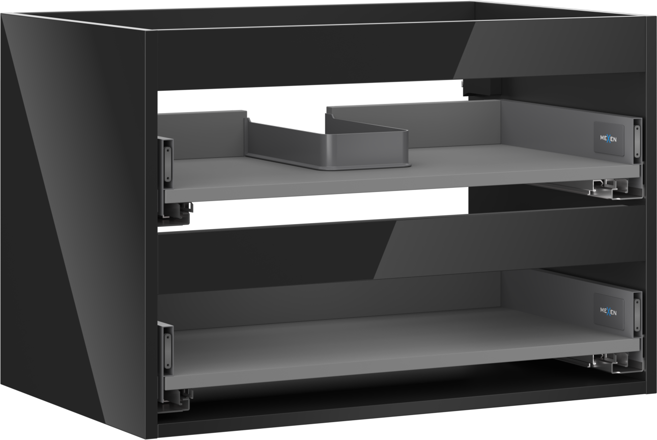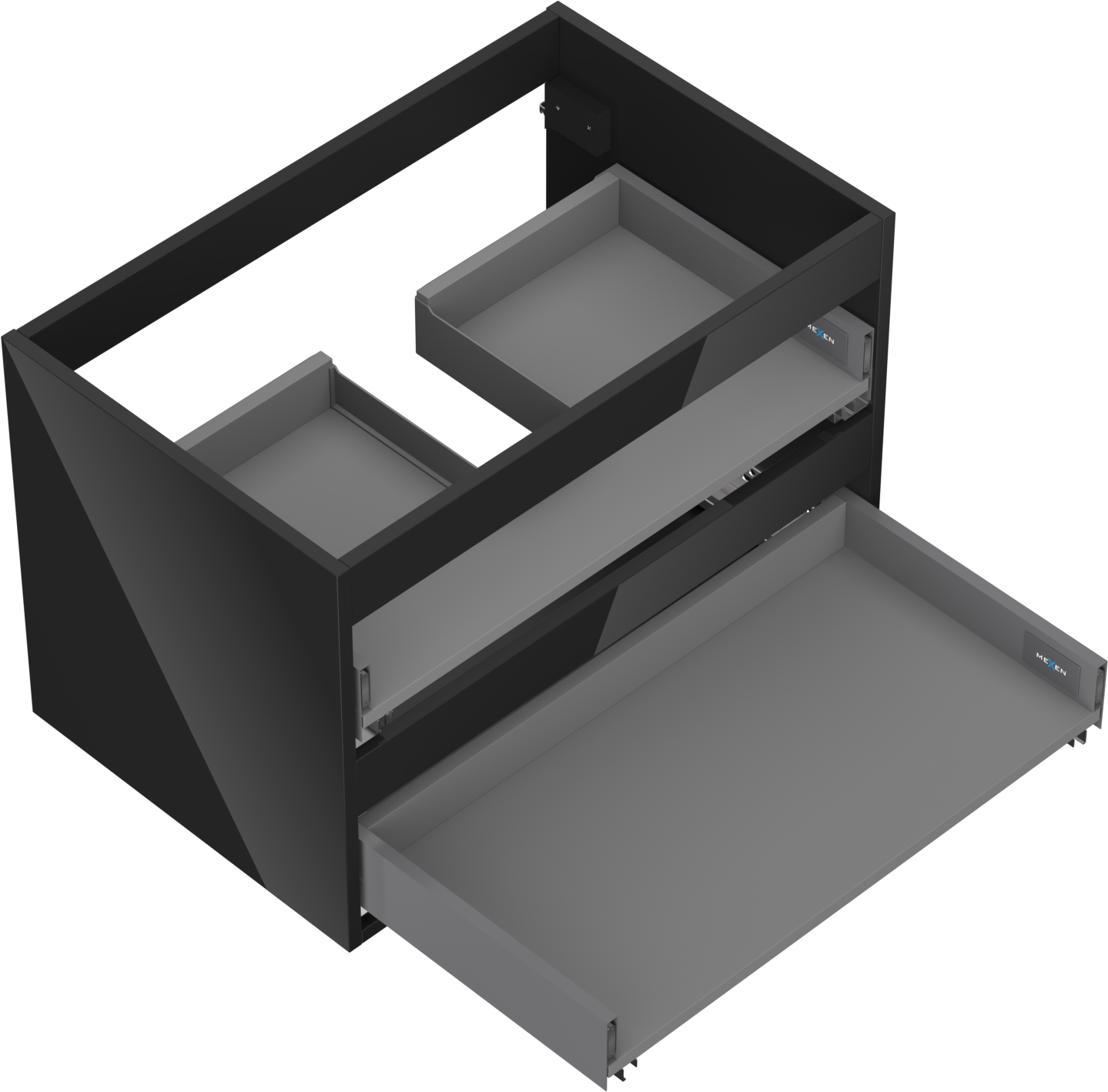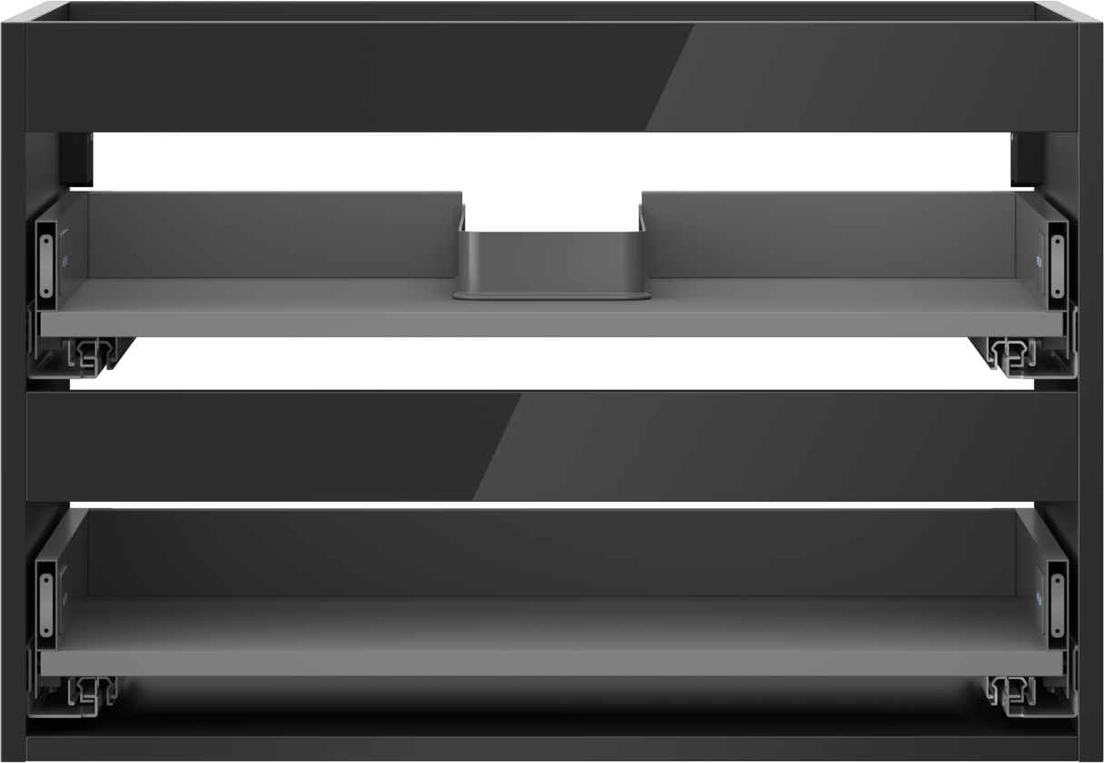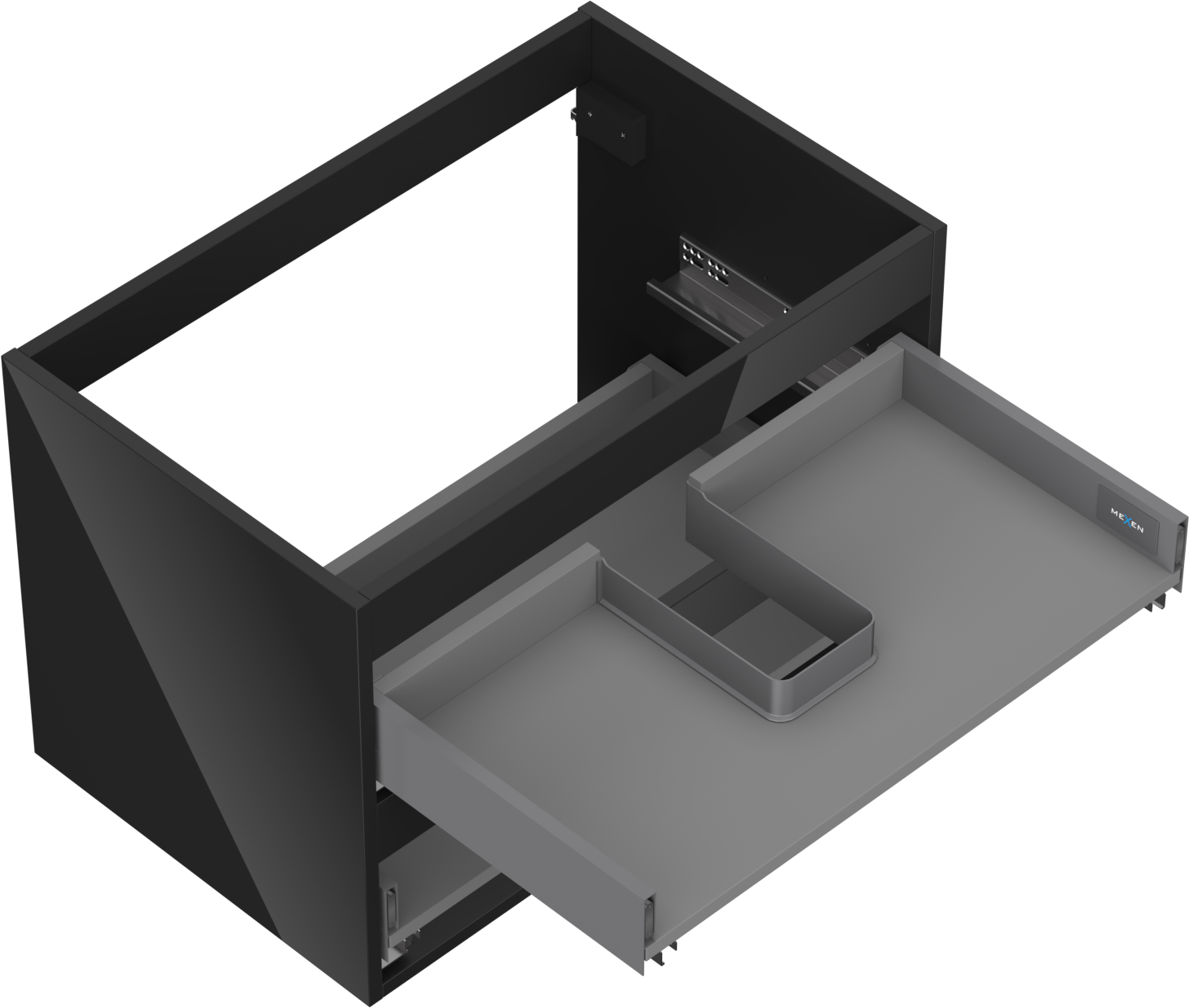 Wycięcie w szufladzie jest zaprojektowane w taki sposób, aby pomieścić syfon, który jest niezbędny w instalacjach umywalkowych. Dzięki temu mebel może być zamontowany w pełni funkcjonalnie, bez konieczności rezygnowania z przestrzeni w szufladzie na rzecz instalacji.