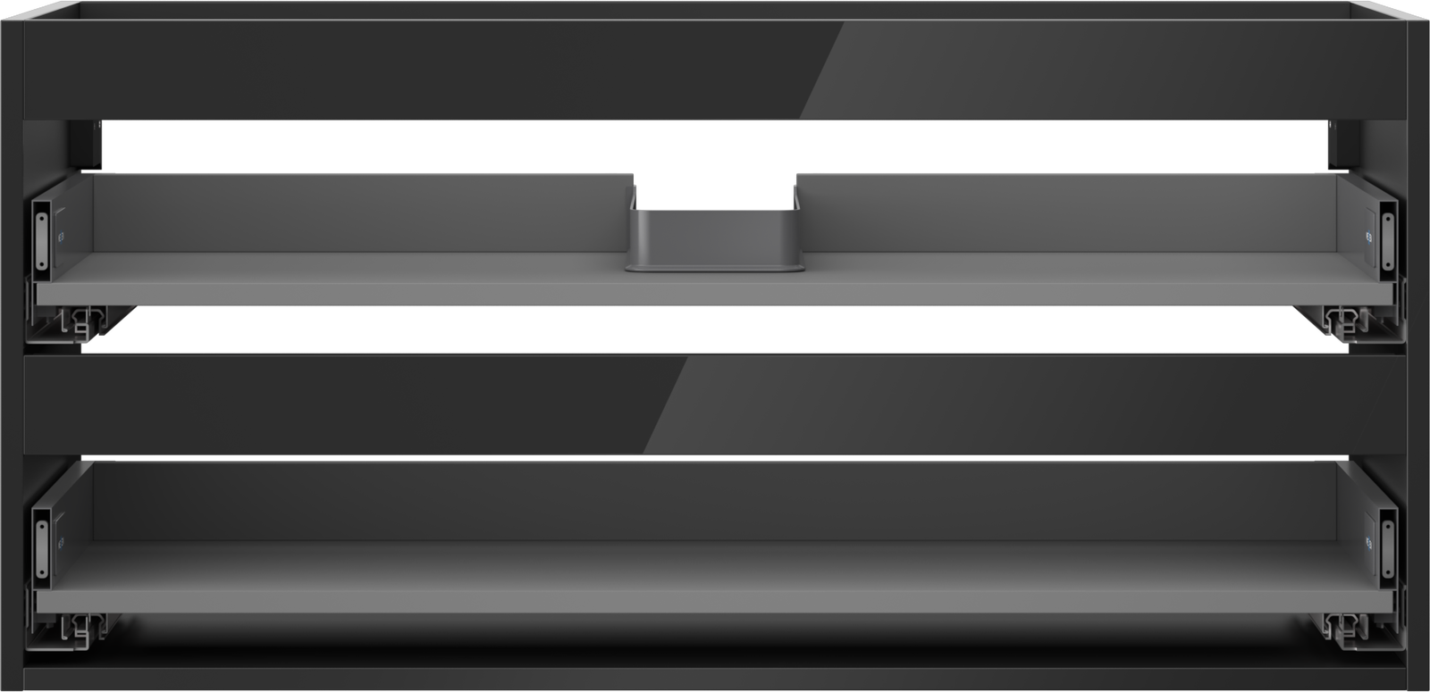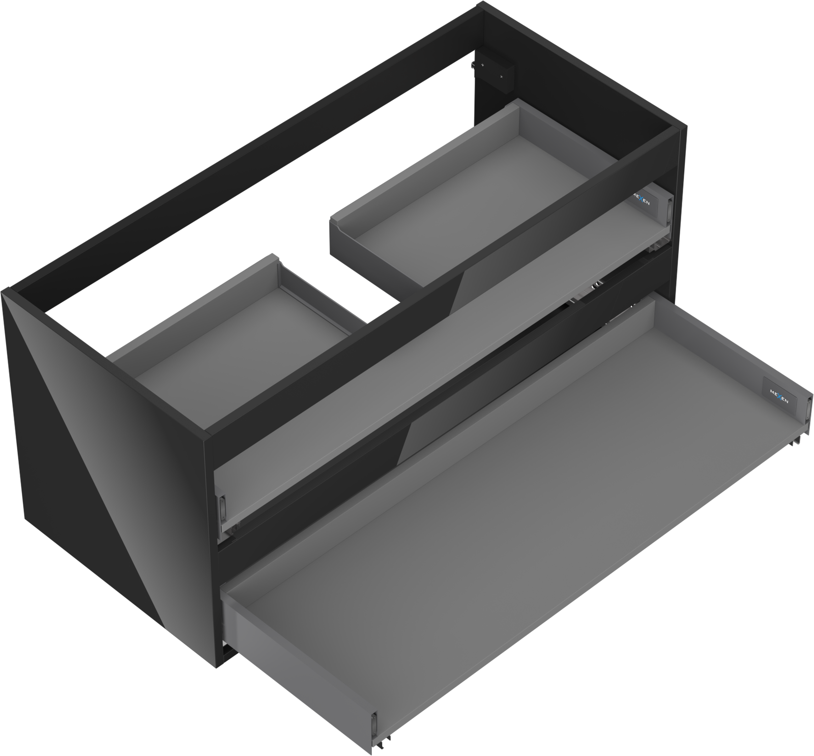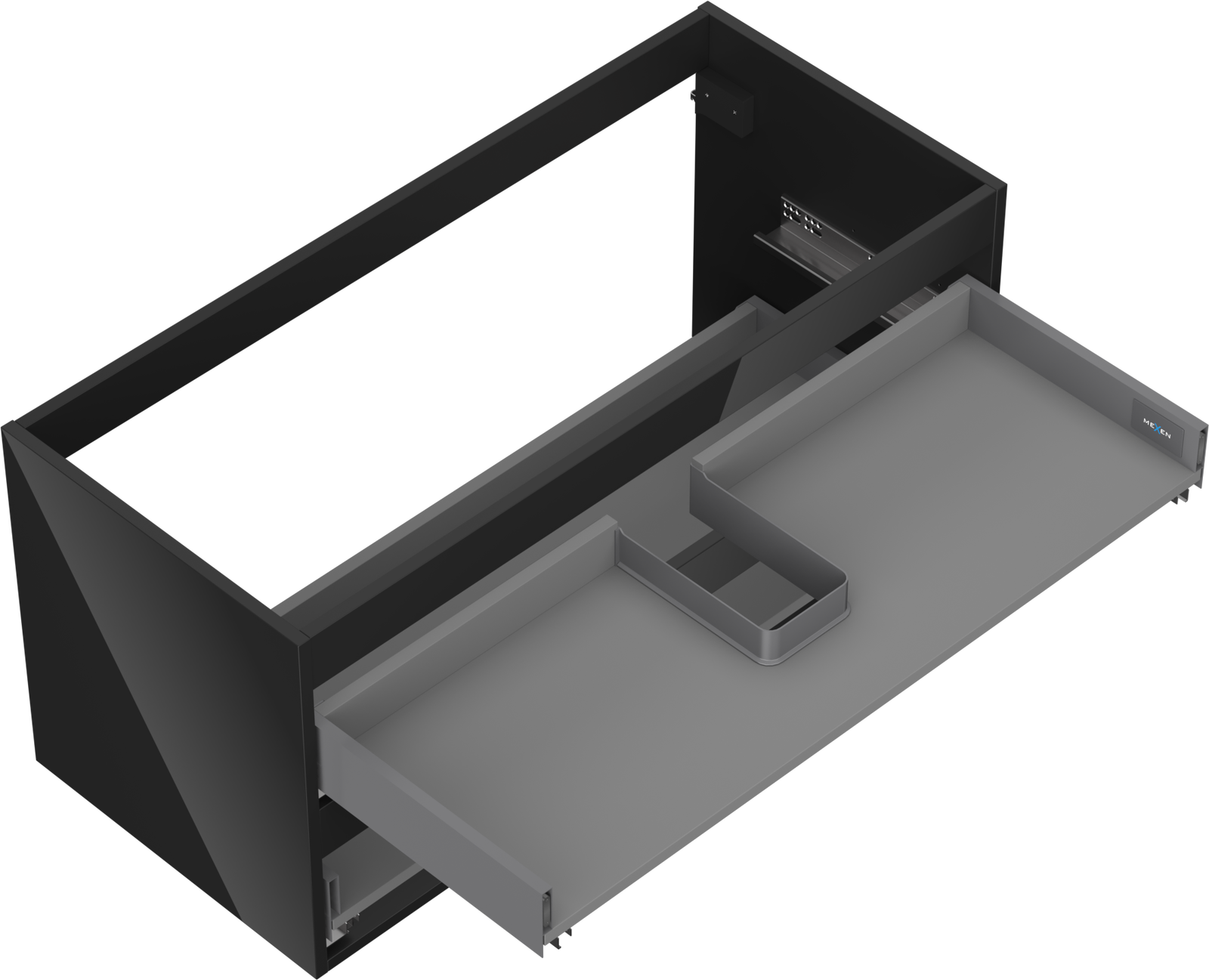 Wycięcie w szufladzie jest zaprojektowane w taki sposób, aby pomieścić syfon, który jest niezbędny w instalacjach umywalkowych. Dzięki temu mebel może być zamontowany w pełni funkcjonalnie, bez konieczności rezygnowania z przestrzeni w szufladzie na rzecz instalacji.