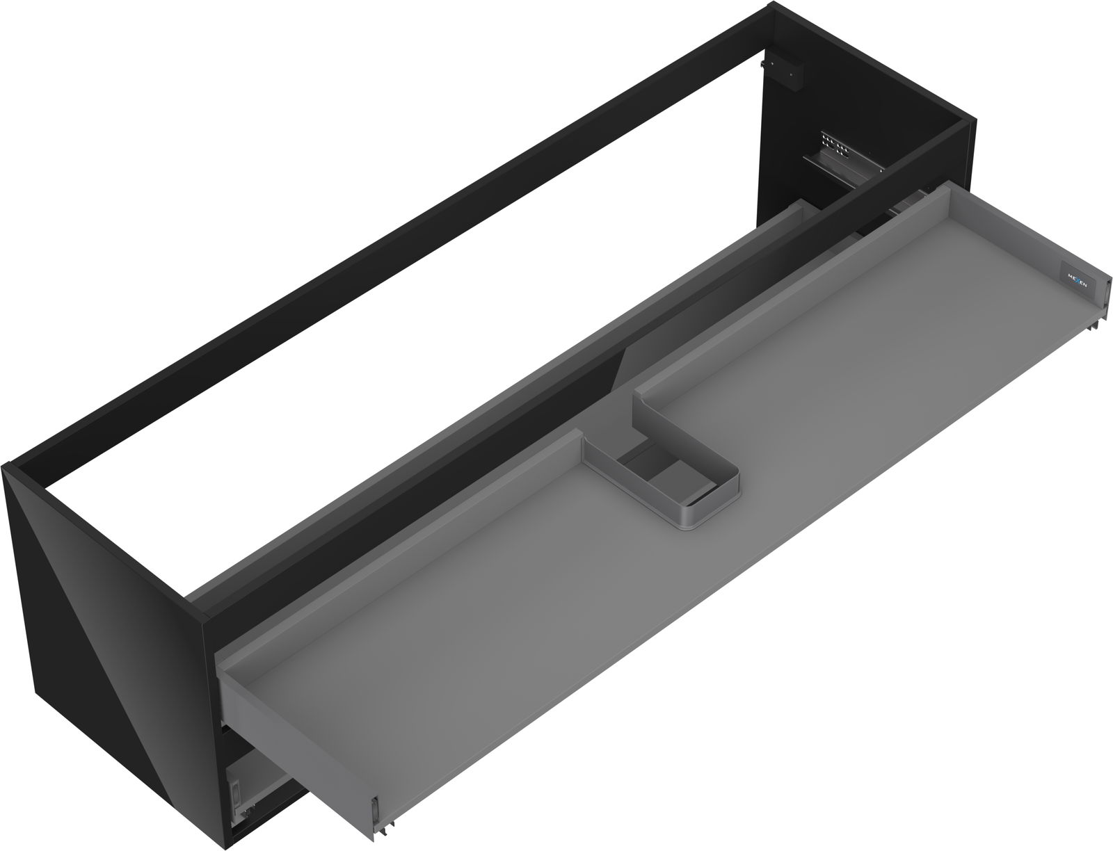 Wycięcie w szufladzie jest zaprojektowane w taki sposób, aby pomieścić syfon, który jest niezbędny w instalacjach umywalkowych. Dzięki temu mebel może być zamontowany w pełni funkcjonalnie, bez konieczności rezygnowania z przestrzeni w szufladzie na rzecz instalacji.