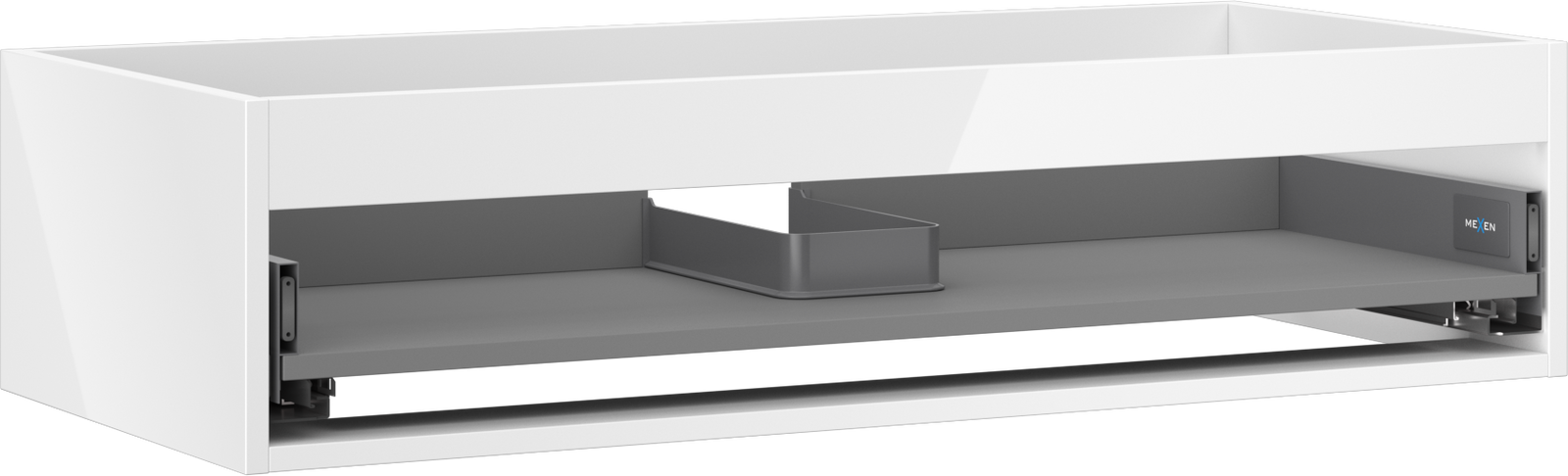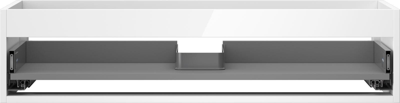 Wycięcie w szufladzie jest zaprojektowane w taki sposób, aby pomieścić syfon, który jest niezbędny w instalacjach umywalkowych. Dzięki temu mebel może być zamontowany w pełni funkcjonalnie, bez konieczności rezygnowania z przestrzeni w szufladzie na rzecz instalacji.