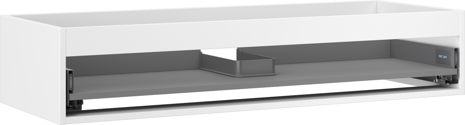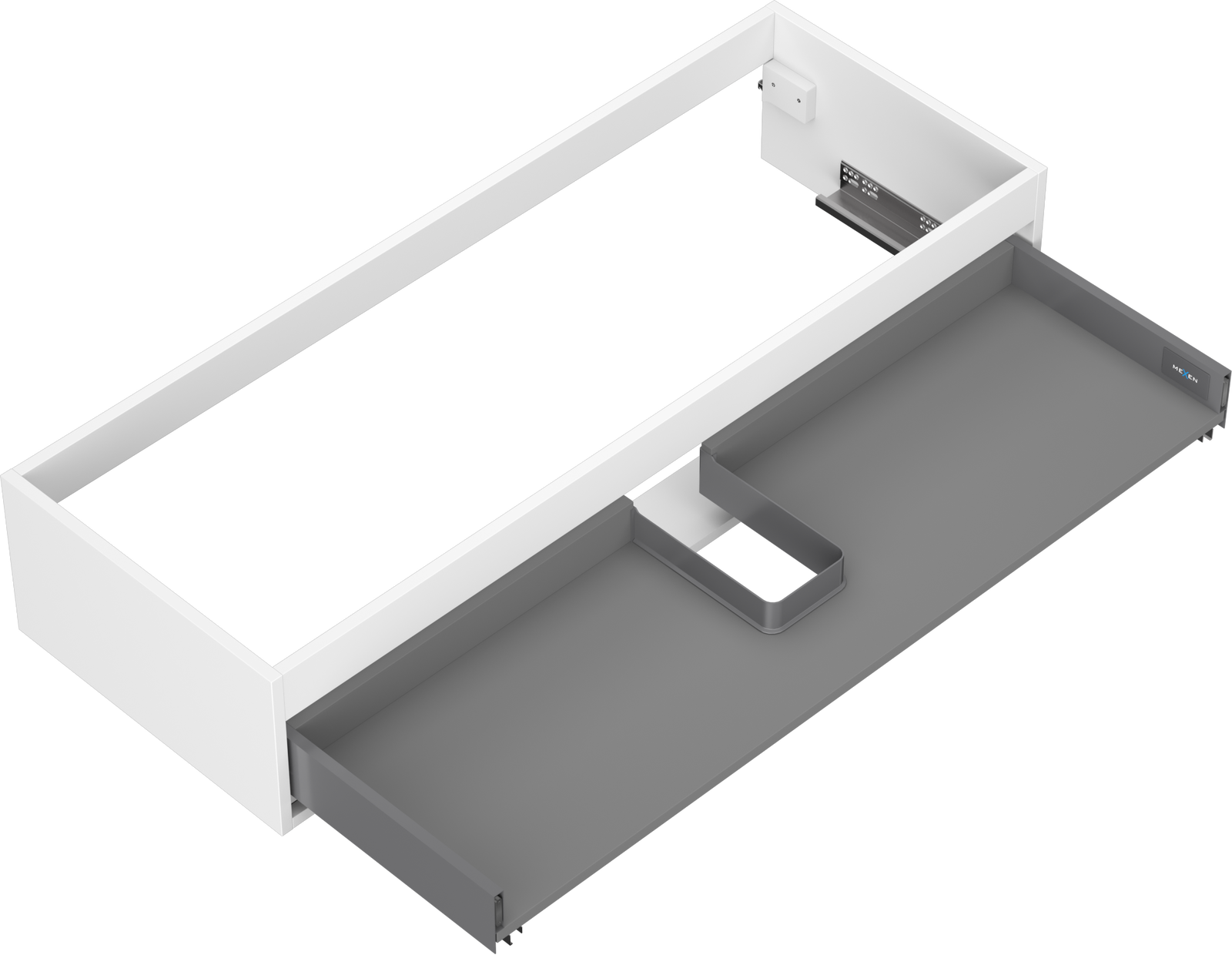 Wycięcie w szufladzie jest zaprojektowane w taki sposób, aby pomieścić syfon, który jest niezbędny w instalacjach umywalkowych. Dzięki temu mebel może być zamontowany w pełni funkcjonalnie, bez konieczności rezygnowania z przestrzeni w szufladzie na rzecz instalacji.