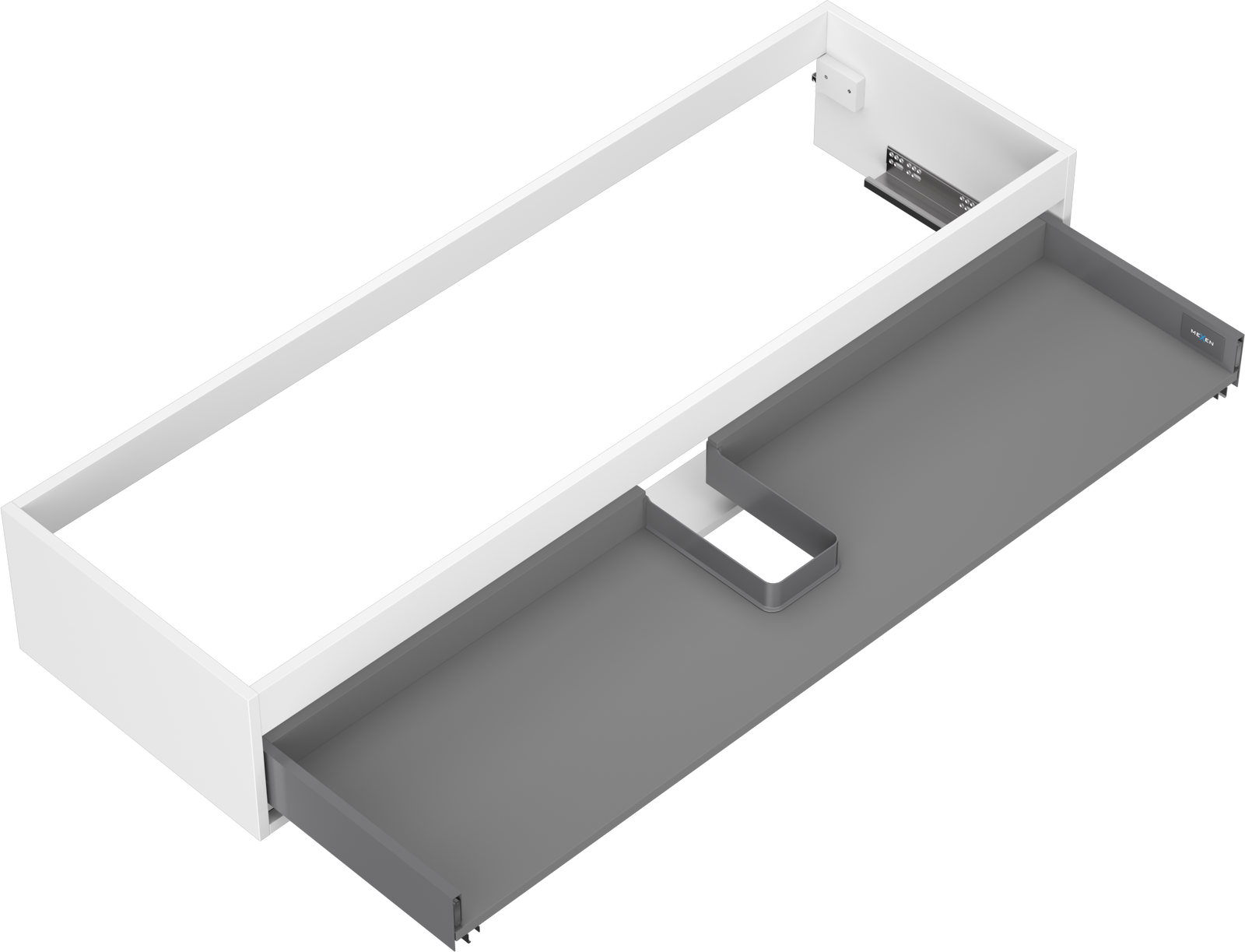 Wycięcie w szufladzie jest zaprojektowane w taki sposób, aby pomieścić syfon, który jest niezbędny w instalacjach umywalkowych. Dzięki temu mebel może być zamontowany w pełni funkcjonalnie, bez konieczności rezygnowania z przestrzeni w szufladzie na rzecz instalacji.