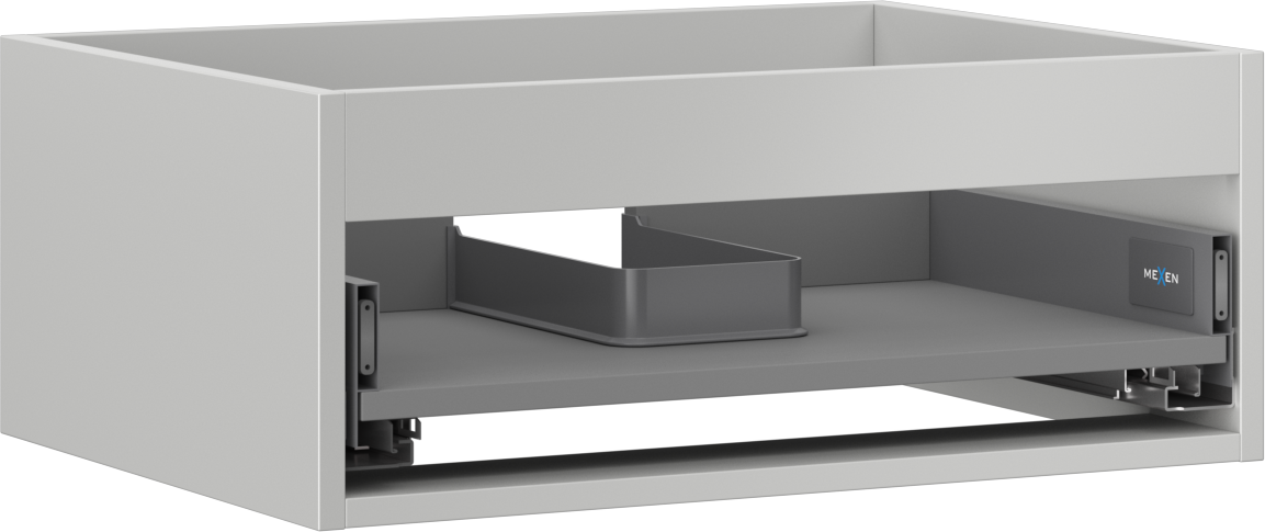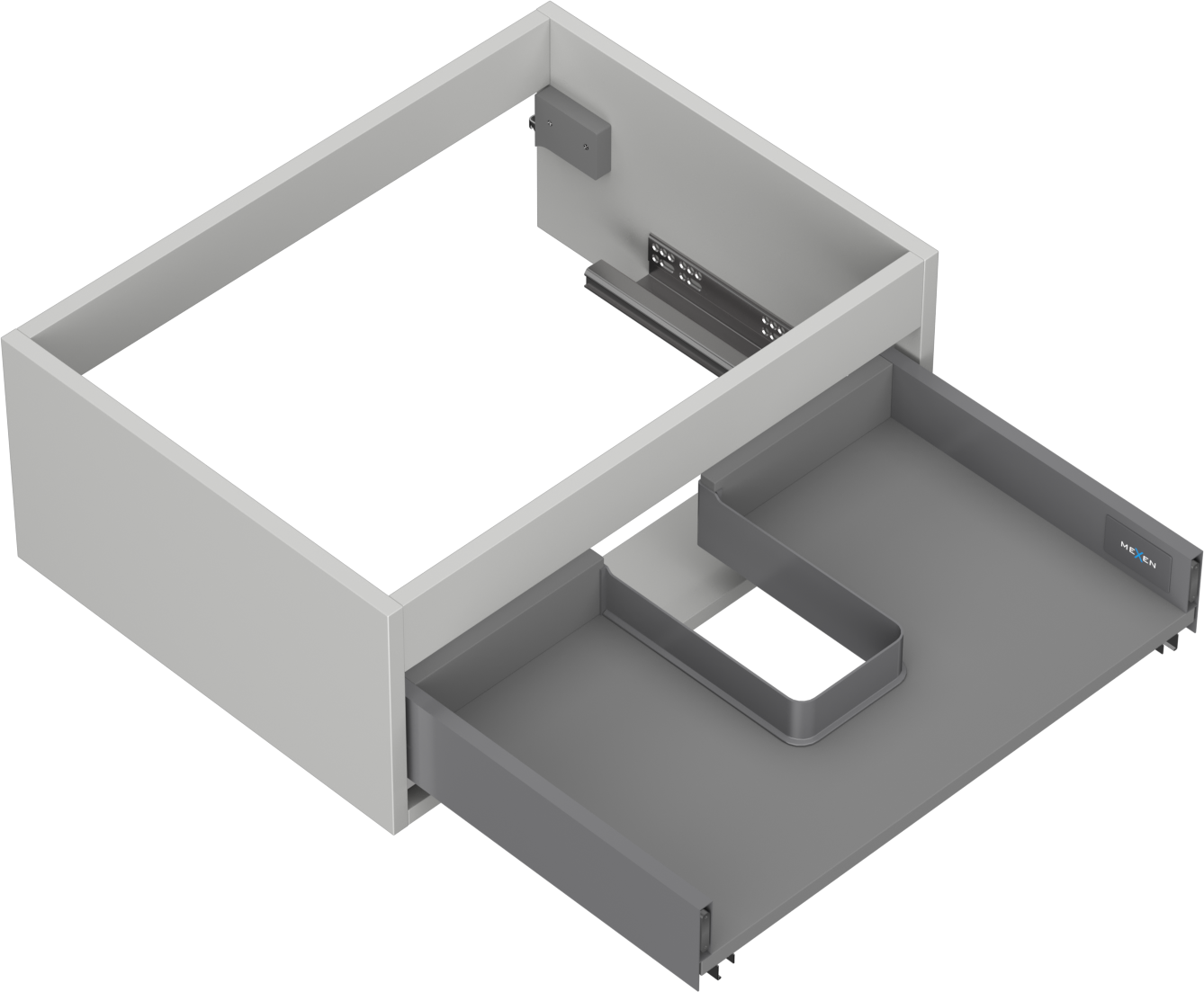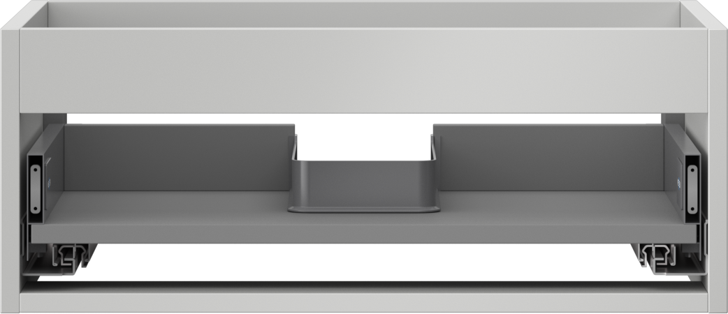 Wycięcie w szufladzie jest zaprojektowane w taki sposób, aby pomieścić syfon, który jest niezbędny w instalacjach umywalkowych. Dzięki temu mebel może być zamontowany w pełni funkcjonalnie, bez konieczności rezygnowania z przestrzeni w szufladzie na rzecz instalacji.