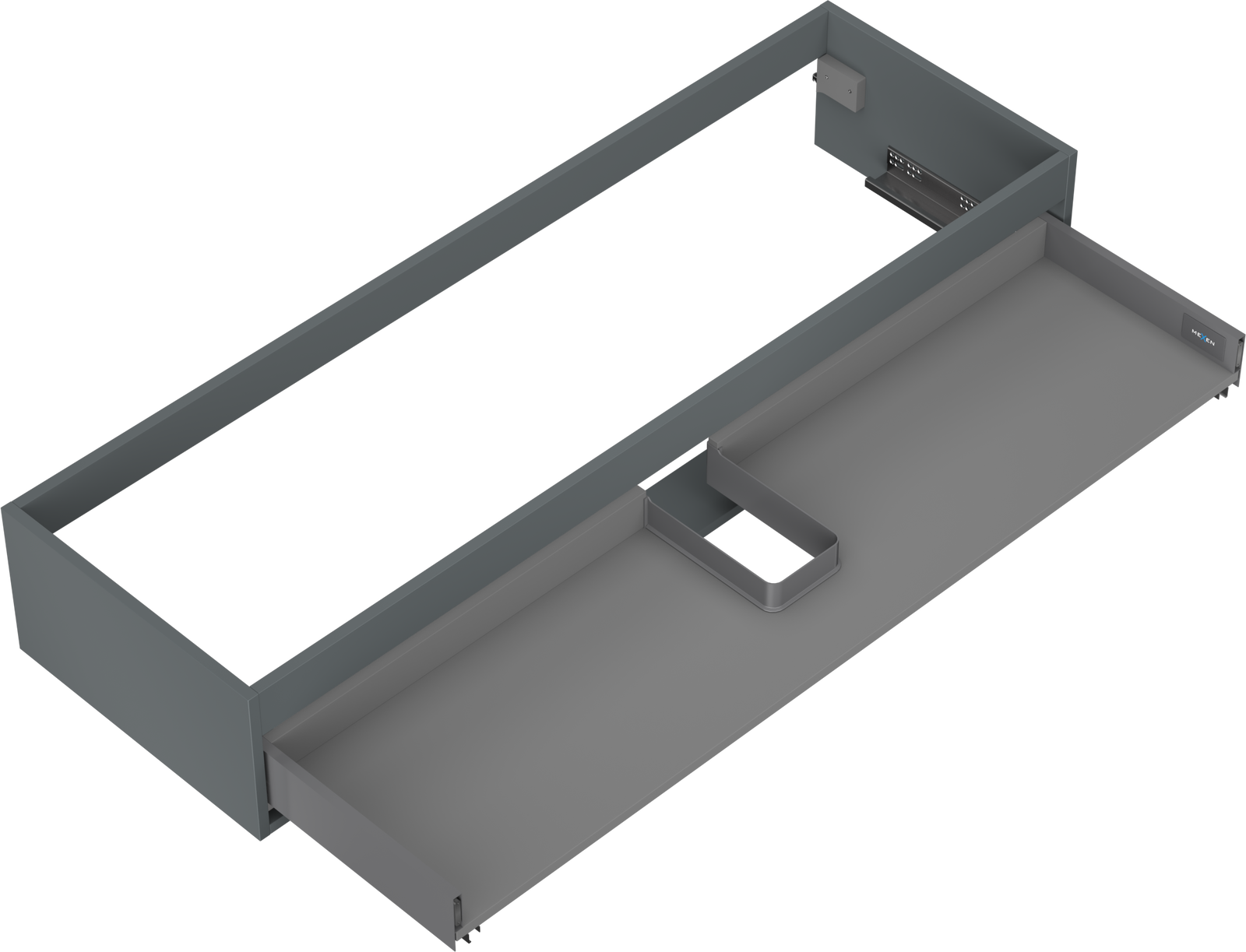 Wycięcie w szufladzie jest zaprojektowane w taki sposób, aby pomieścić syfon, który jest niezbędny w instalacjach umywalkowych. Dzięki temu mebel może być zamontowany w pełni funkcjonalnie, bez konieczności rezygnowania z przestrzeni w szufladzie na rzecz instalacji.