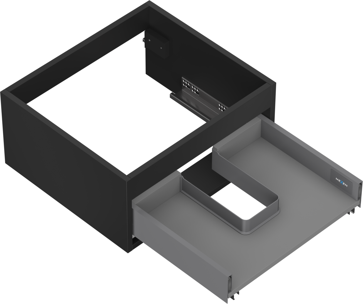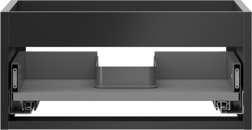 Wycięcie w szufladzie jest zaprojektowane w taki sposób, aby pomieścić syfon, który jest niezbędny w instalacjach umywalkowych. Dzięki temu mebel może być zamontowany w pełni funkcjonalnie, bez konieczności rezygnowania z przestrzeni w szufladzie na rzecz instalacji.