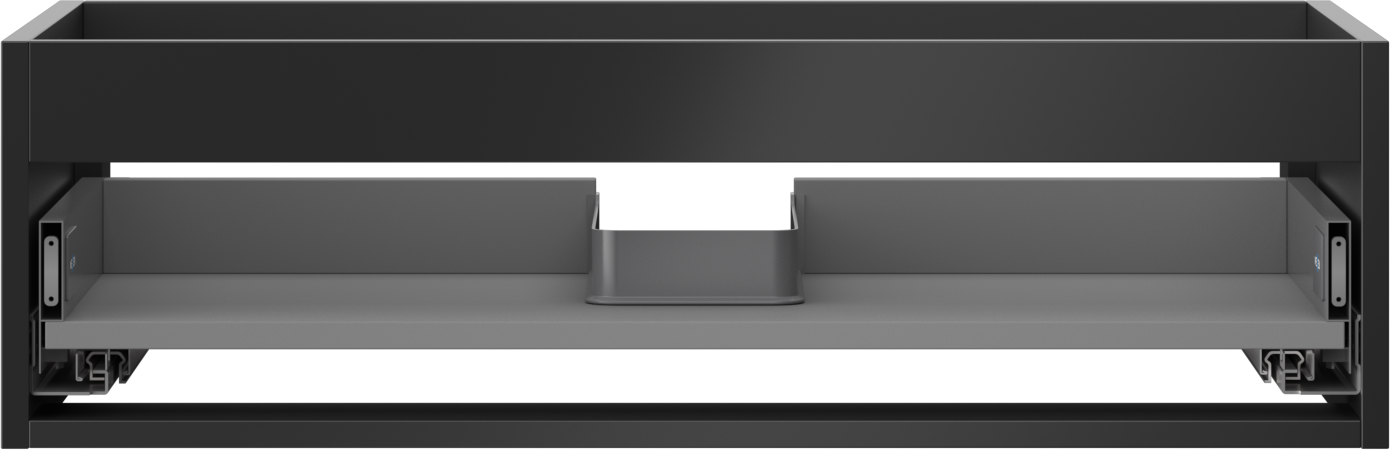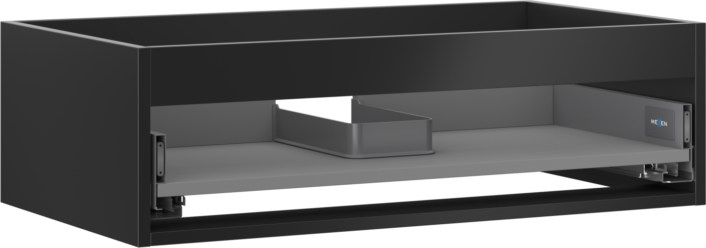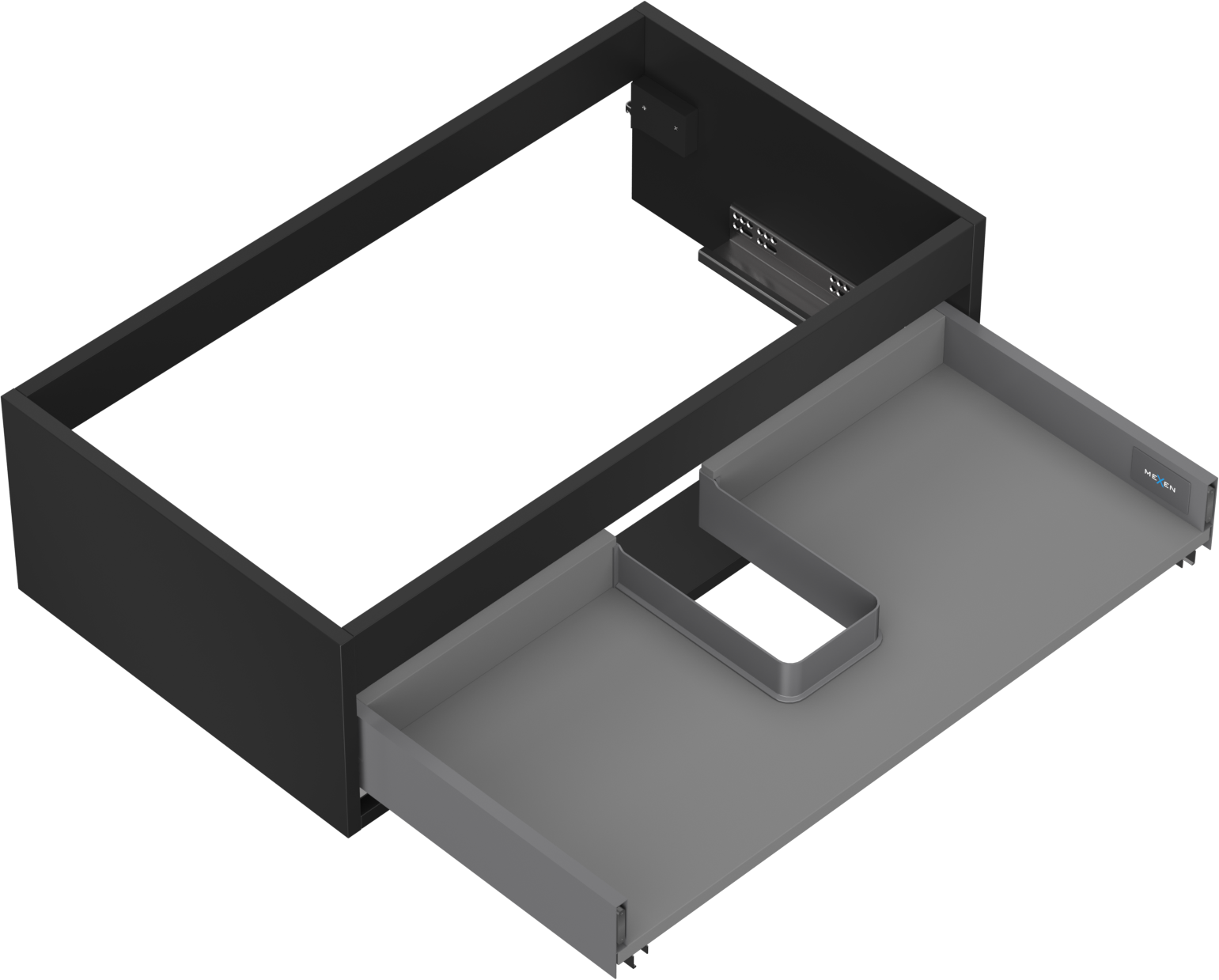 Wycięcie w szufladzie jest zaprojektowane w taki sposób, aby pomieścić syfon, który jest niezbędny w instalacjach umywalkowych. Dzięki temu mebel może być zamontowany w pełni funkcjonalnie, bez konieczności rezygnowania z przestrzeni w szufladzie na rzecz instalacji.