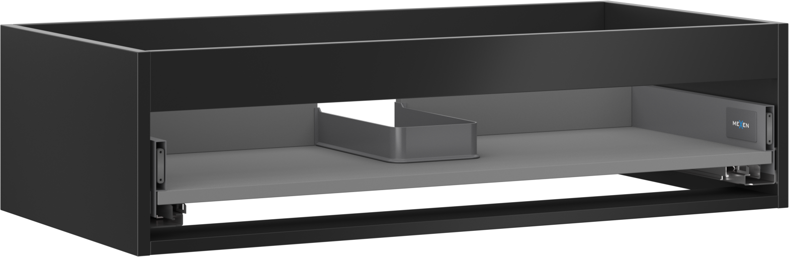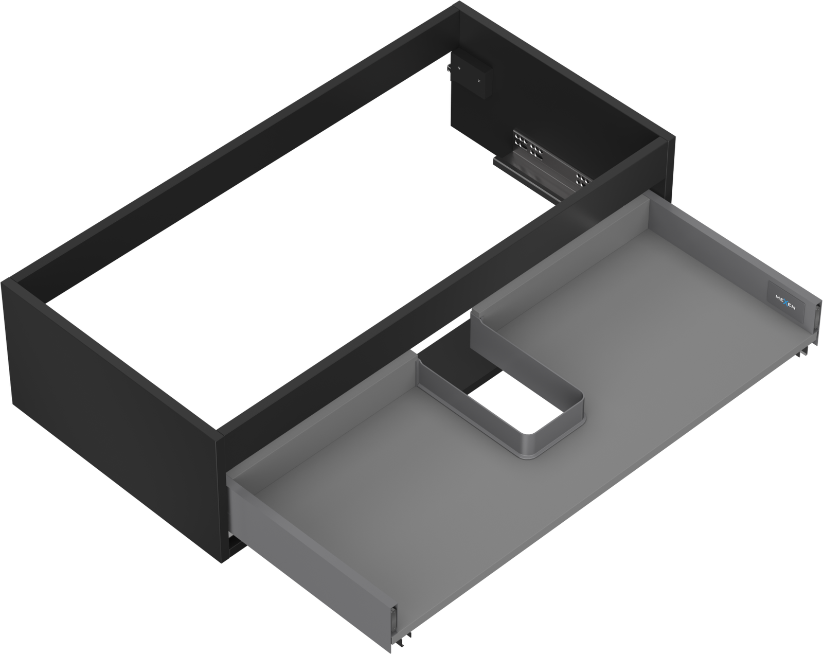 Wycięcie w szufladzie jest zaprojektowane w taki sposób, aby pomieścić syfon, który jest niezbędny w instalacjach umywalkowych. Dzięki temu mebel może być zamontowany w pełni funkcjonalnie, bez konieczności rezygnowania z przestrzeni w szufladzie na rzecz instalacji.