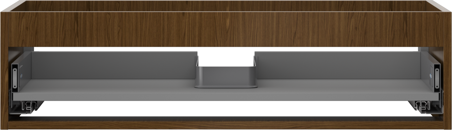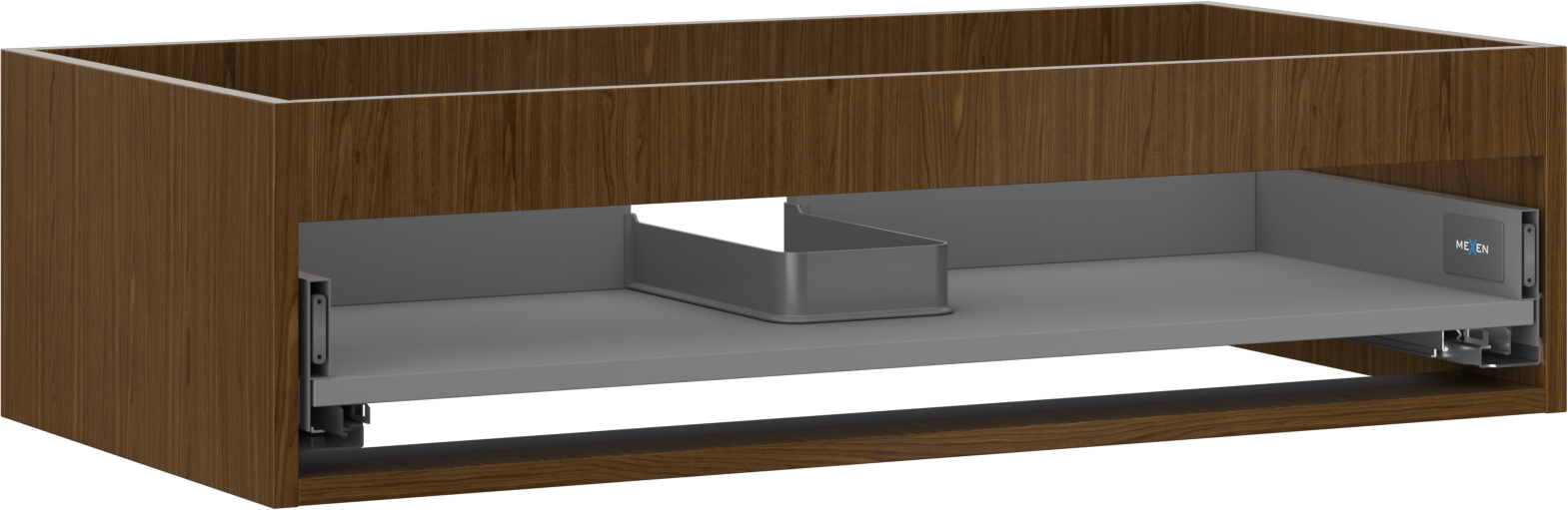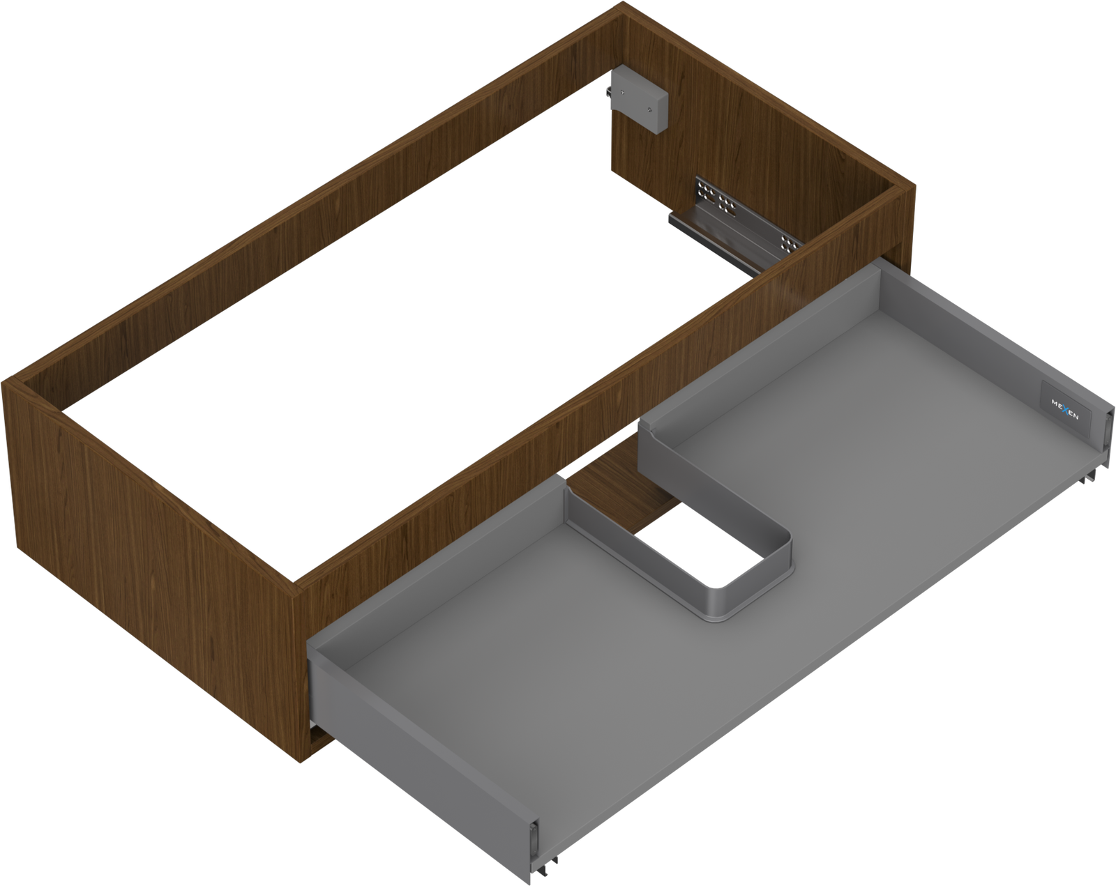 Wycięcie w szufladzie jest zaprojektowane w taki sposób, aby pomieścić syfon, który jest niezbędny w instalacjach umywalkowych. Dzięki temu mebel może być zamontowany w pełni funkcjonalnie, bez konieczności rezygnowania z przestrzeni w szufladzie na rzecz instalacji.